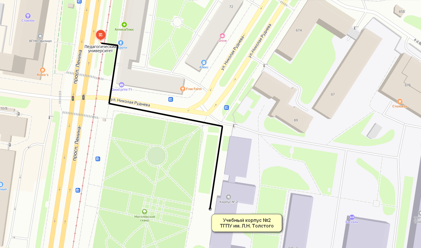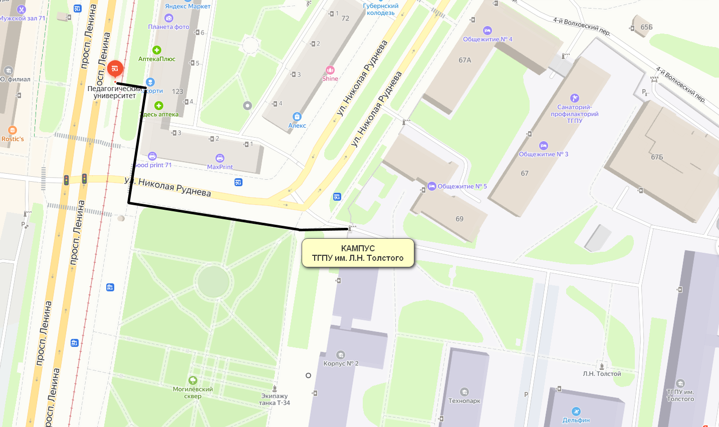 Схема пути движения ТГПУ им. Л.Н.Толстого