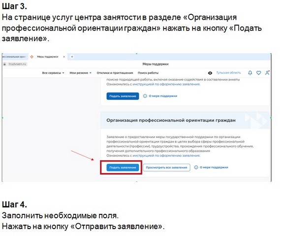 На базе единой цифровой платформы «Работа в России» для всех выпускников и студентов открыта возможность подачи заявления на профориентацию. Результатом обработки поданного заявления станет активная помощь в разработке индивидуальной траектории трудоустройства от Центра занятости населения Тульской области.