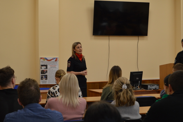 В рамках содействия трудоустройству студентов университета в учебном корпусе № 2 прошла встреча обучающихся 2 и 3 курсов факультета физической культуры с сотрудниками УМВД России по Тульской области.