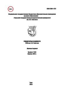 Тула 2025 ISSN 2304–4772 Федеральное государственное бюджетное образовательное учреждение высшего образования «Тульский государственный педагогический университет им. Л. Н. Толстого» ГУМАНИТАРНЫЕ ВЕДОМОСТИ ТГПУ им. Л. Н. Толстого Научный журнал Выпуск 1 (53) Апрель 2025 г.