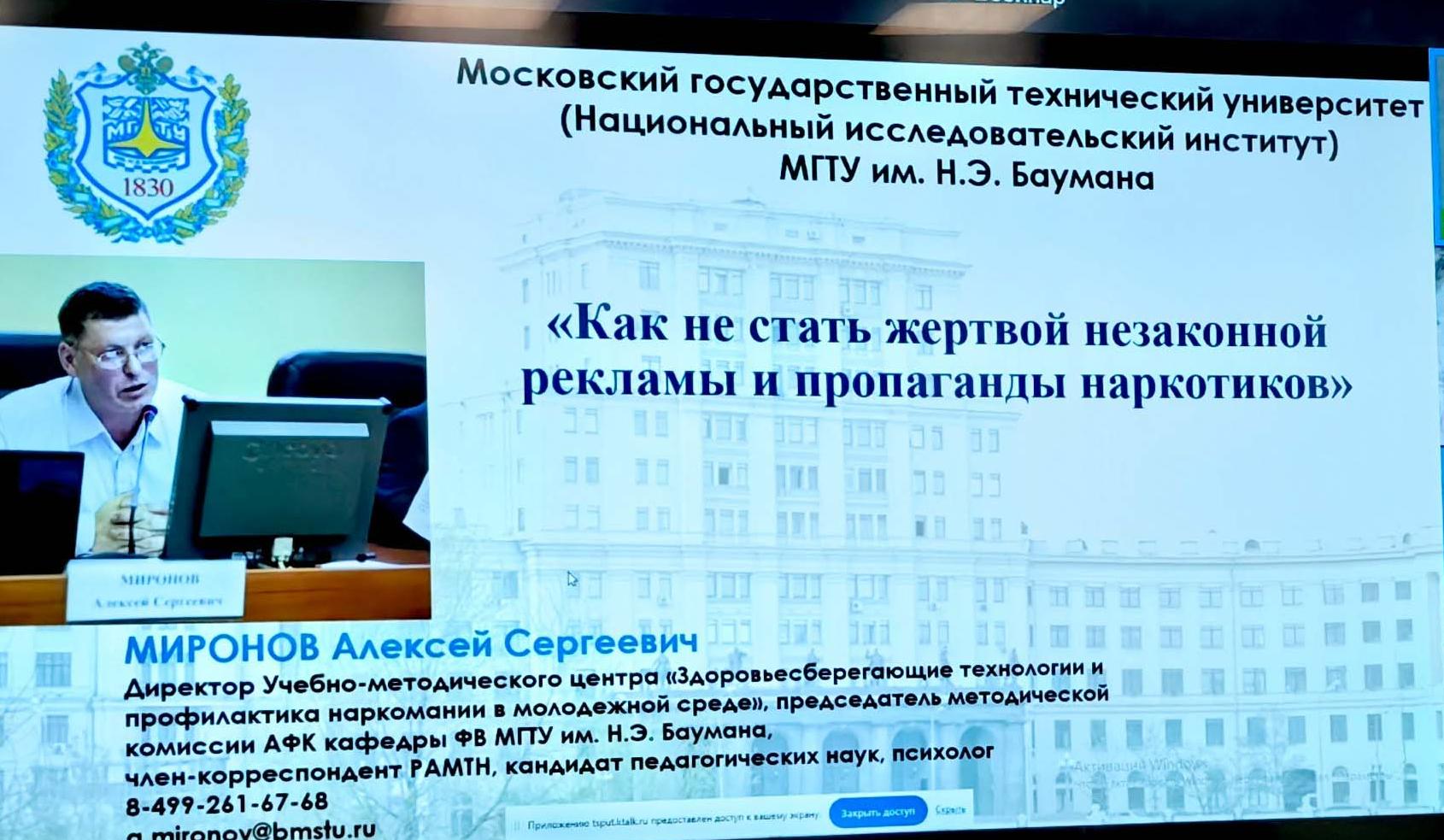 Миронов Алексей Сергеевич, директор Учебно-методического центра «Здоровьесберегающие технологии и профилактика наркомании в молодёжной среде» МГТУ им. Н.Э. Баумана, кандидат педагогических наук, доцент, рассказал, как не стать жертвой незаконной рекламы и пропаганды наркотиков.