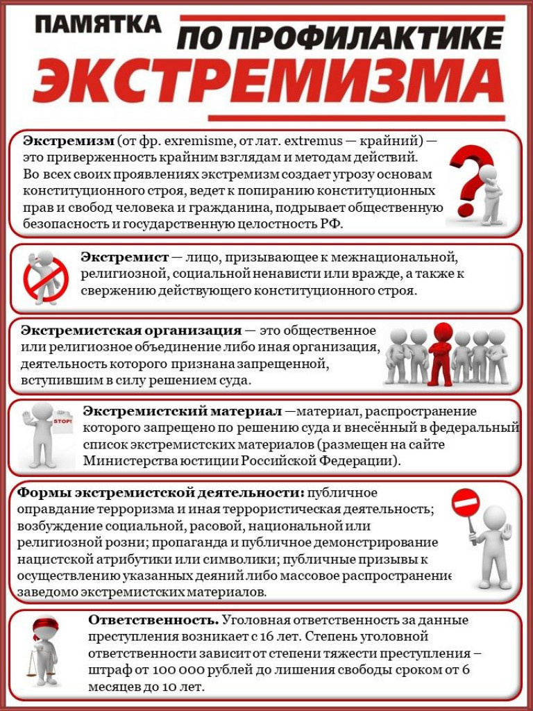 В соответствии с законодательством на территории Российской Федерации запрещаются распространение экстремистских материалов, а также их производство или хранение в целях распространения. Производство, хранение или распространение экстремистских материалов является правонарушением и влечет за собой ОТВЕТСТВЕННОСТЬ.