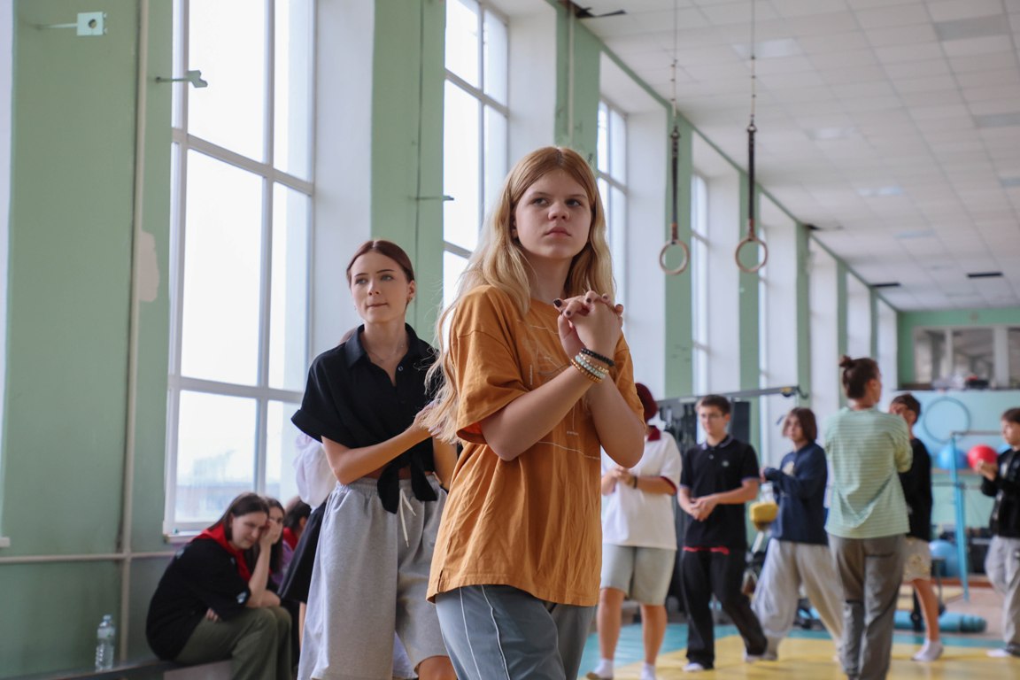 Продолжили день с нашим факультетом физической культуры. Играм на открытой площадке помешал дождь, но даже он не может изменить планы наших спортсменов: переместились в гимнастический зал и с азартом померялись в скорости, ловкости и силе.