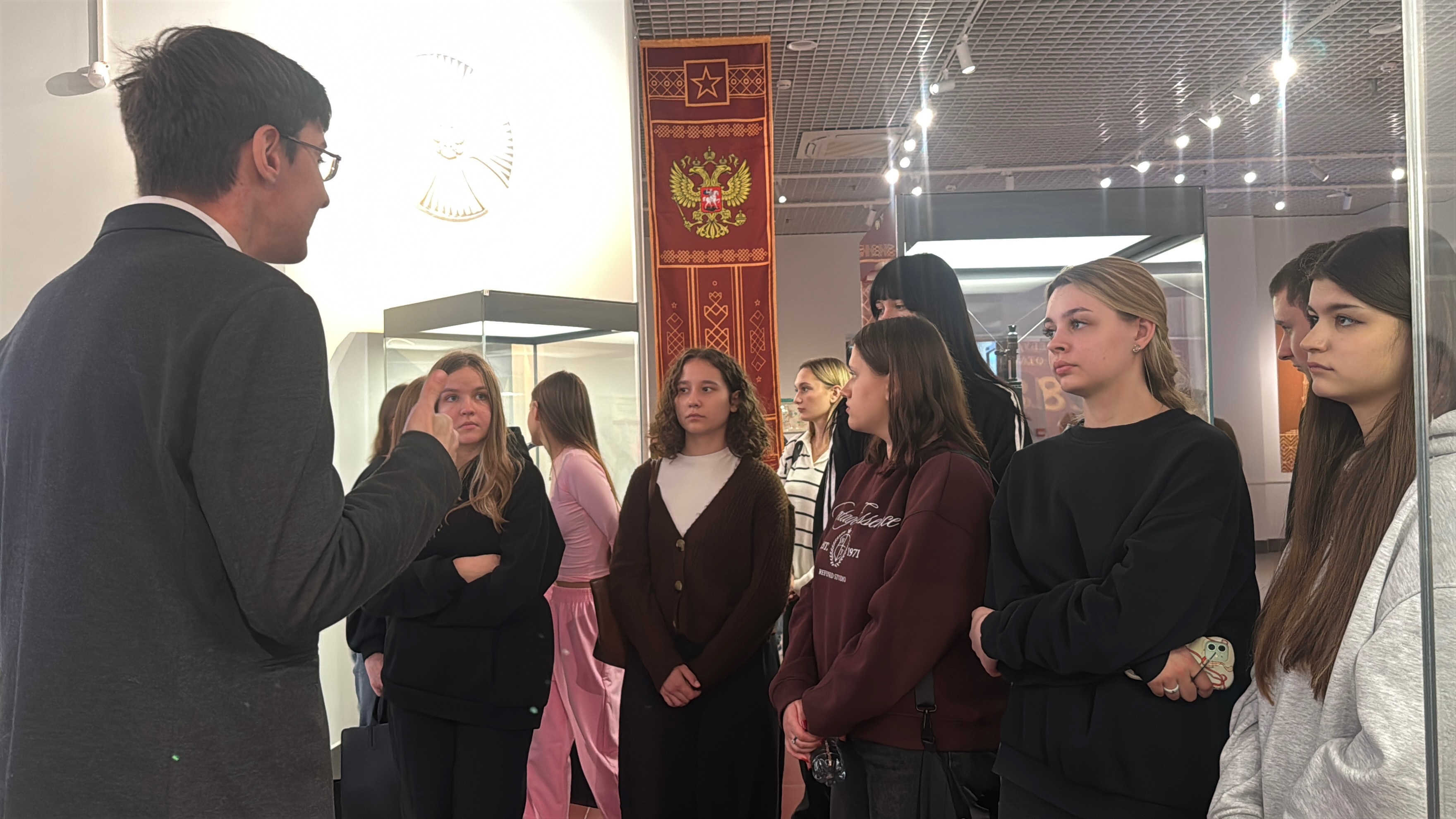 После торжественной церемонии открытия, для студентов факультета была организована экскурсия по экспозиции, представленной на выставке. Экскурсию провел выпускник факультета истории и права Артур Абрамов.