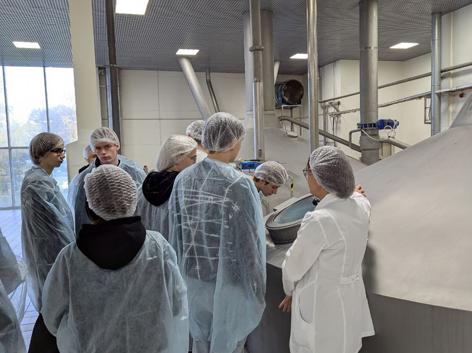 Студенты ознакомились с полувековой историей предприятия, разнообразными видами и сортами продукции, основами технологического процесса приготовления напитков на основе ячменя, солода и хмеля, осмотрели участок розлива в пластиковую и жестяную тару, и посетили варочный цех.