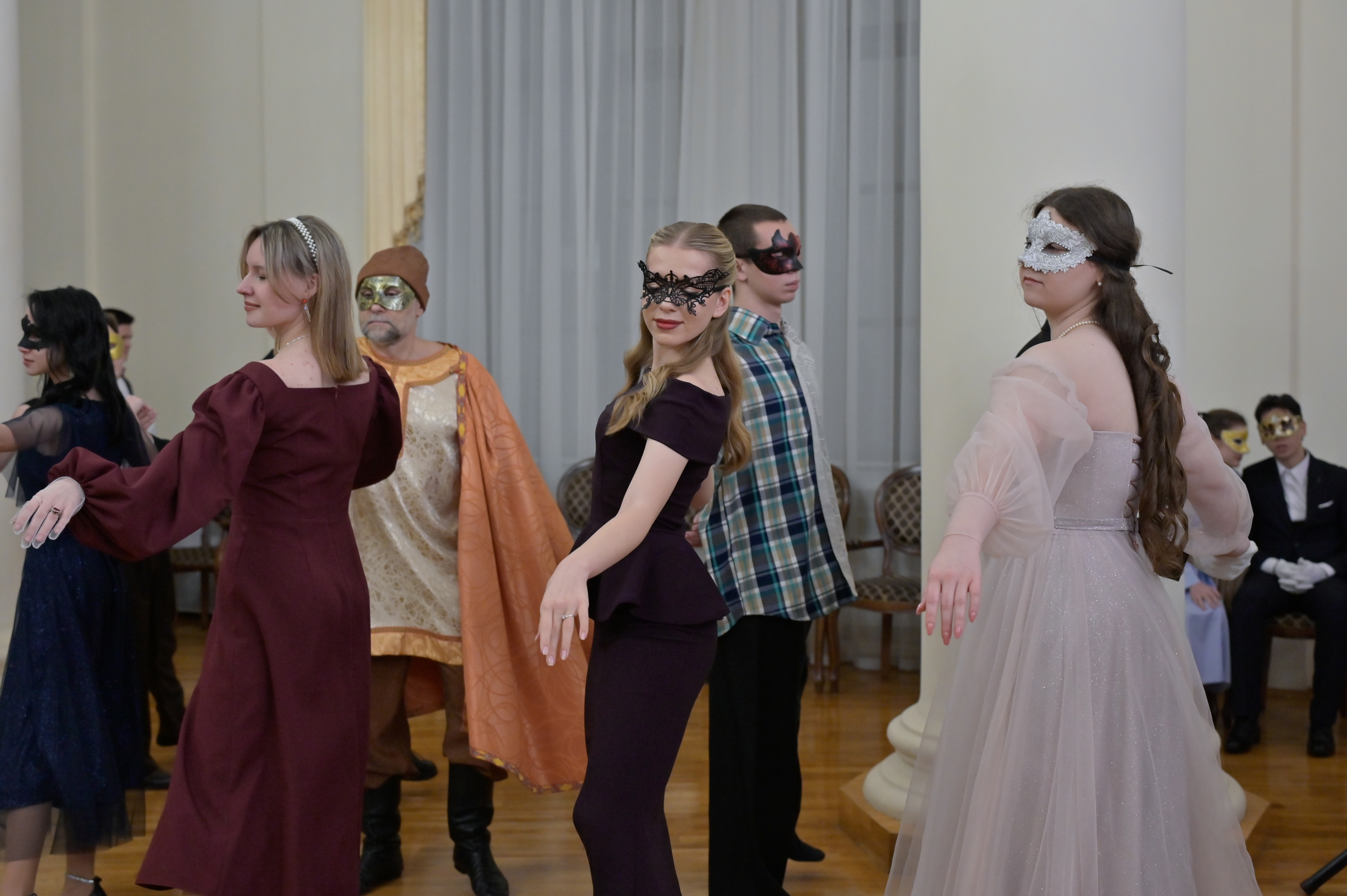 В Колонном зале Дома дворянского собрания студенты окунулись в атмосферу маскарада.