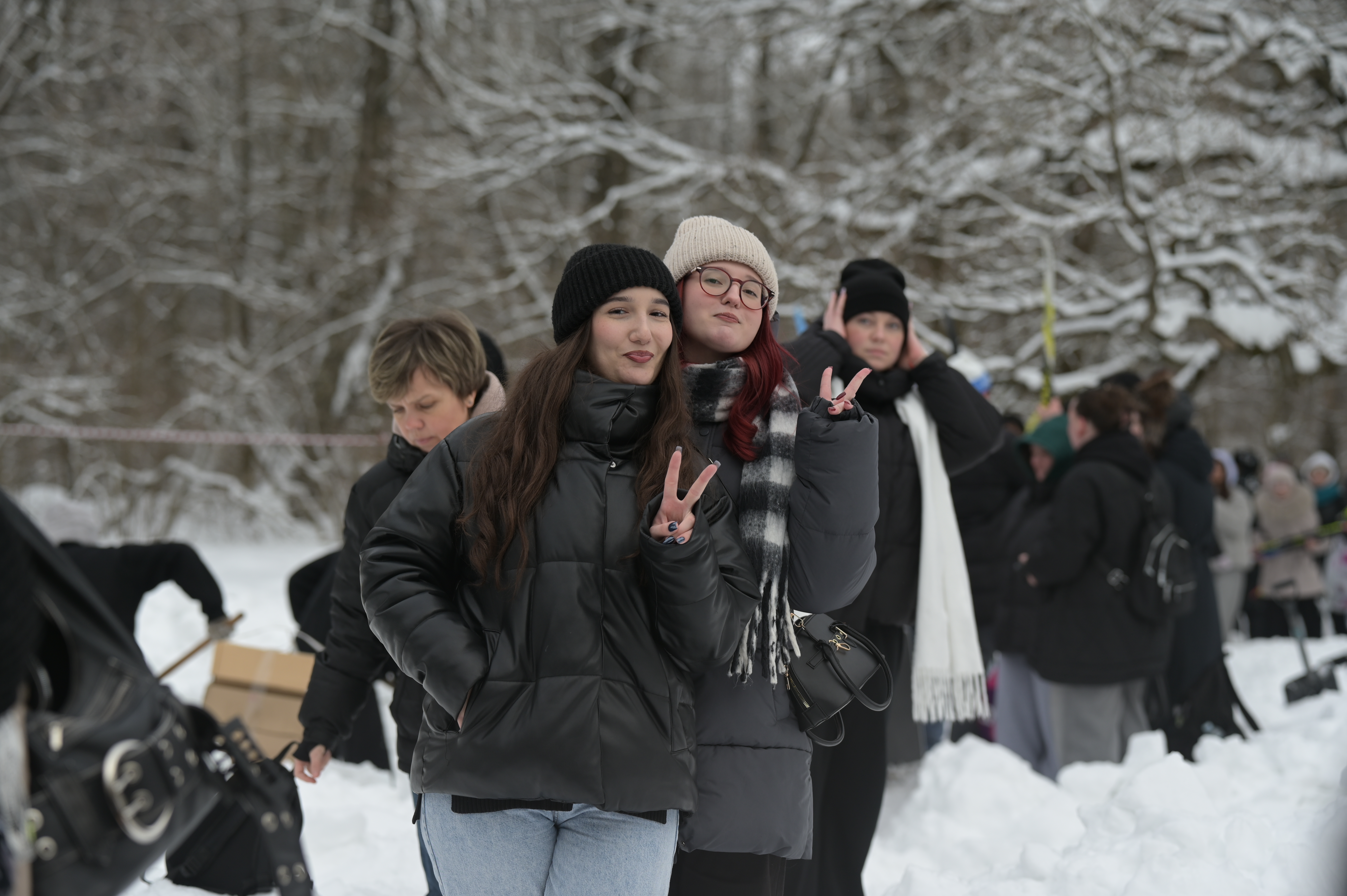 Группы поддержки факультетов и институтов ждали участников на финише с вкусной едой и ароматным чаем. Хорошее настроение усиливала игра в снежки.