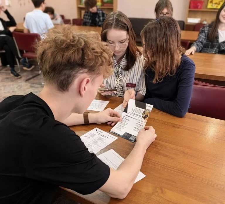 Будущие выпускники познакомились с приемной кампанией 2026-2027 года. У школьников вызвали интерес факультет истории и права, физико-математический, психологии, физической культуры, колледж университета. С помощью мастер- класса «Загляни в свое завтра с факультетом психологии» обучающиеся выстроили свою индивидуальную траекторию школа — вуз.