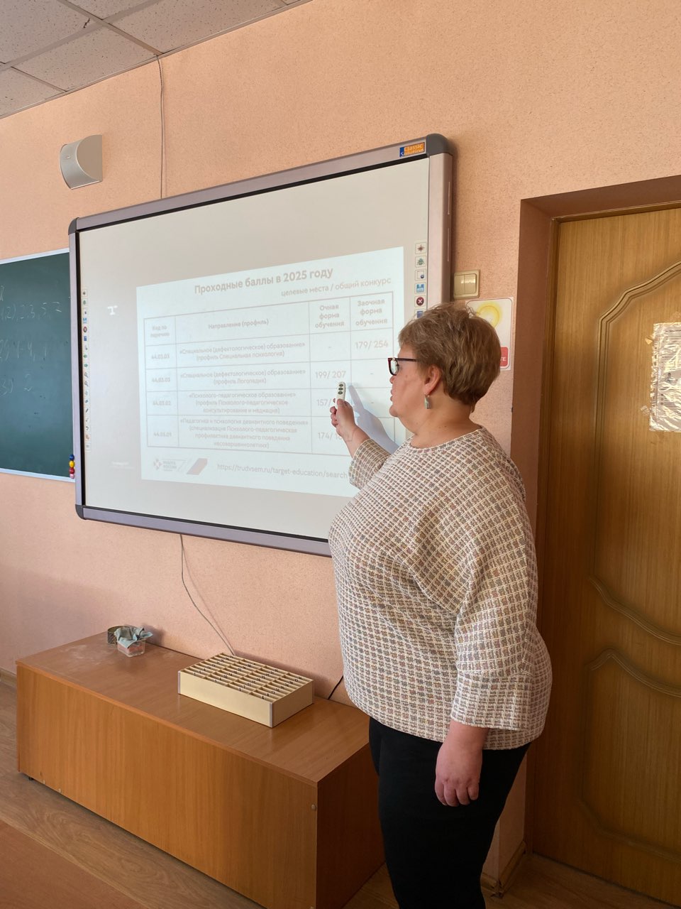Светлана Геннадьевна рассказала будущим выпускникам колледжа о направлениях подготовки, набор на которые будет осуществляться в 2026-2027 учебном году.