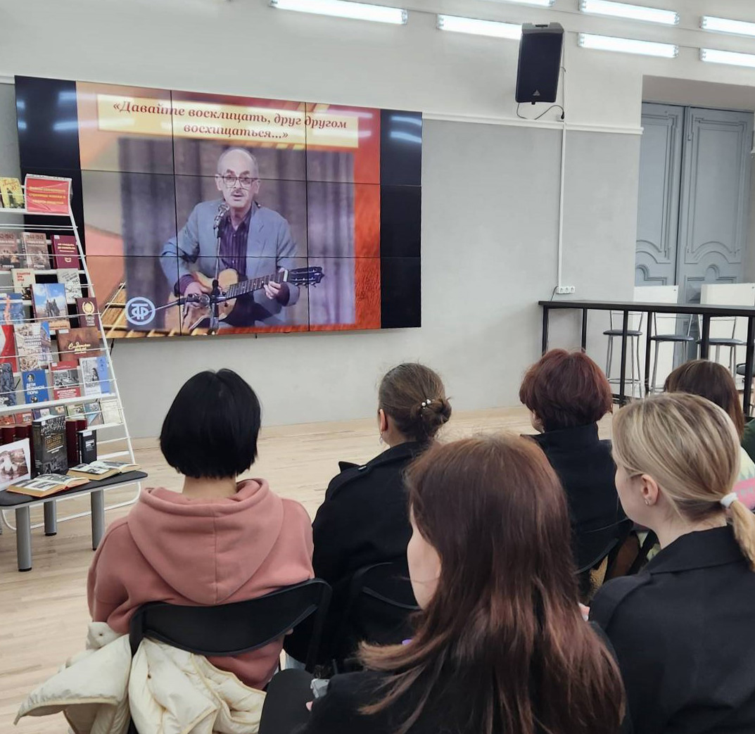 Михайловна Старцева представила обзор поэтического и прозаического творчества Булата Шалвовича, рассказала об уникальных фактах его биографии.