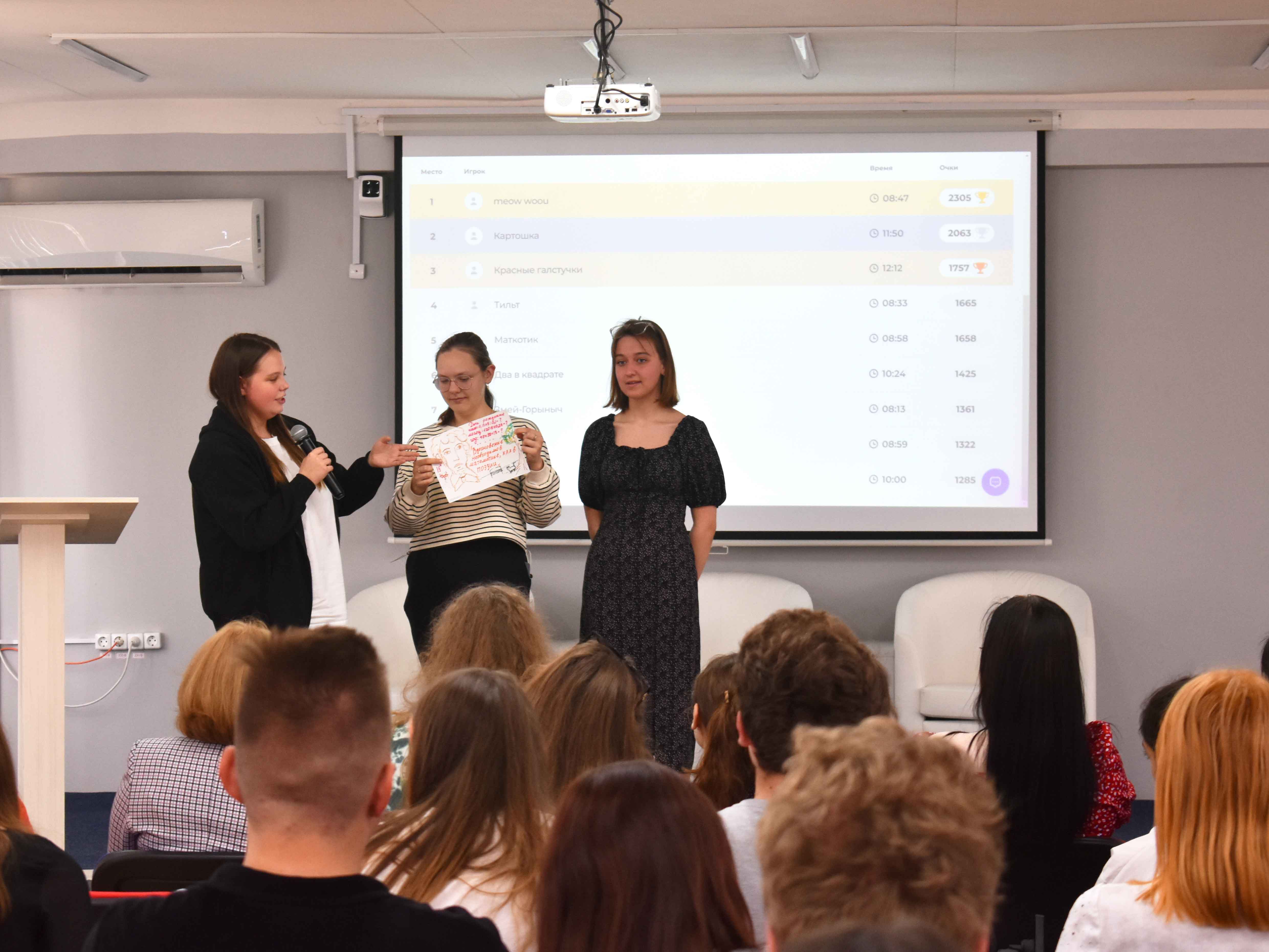 Студенты поблагодарили организаторов: Мартынюк Юлию Михайловну, Даниленко Софью Валерьевну, Ванькову Валентину Сергеевну и декана Реброву Ирину Юрьевну за необыкновенный экскурс в глубины художественных произведений великого поэта.