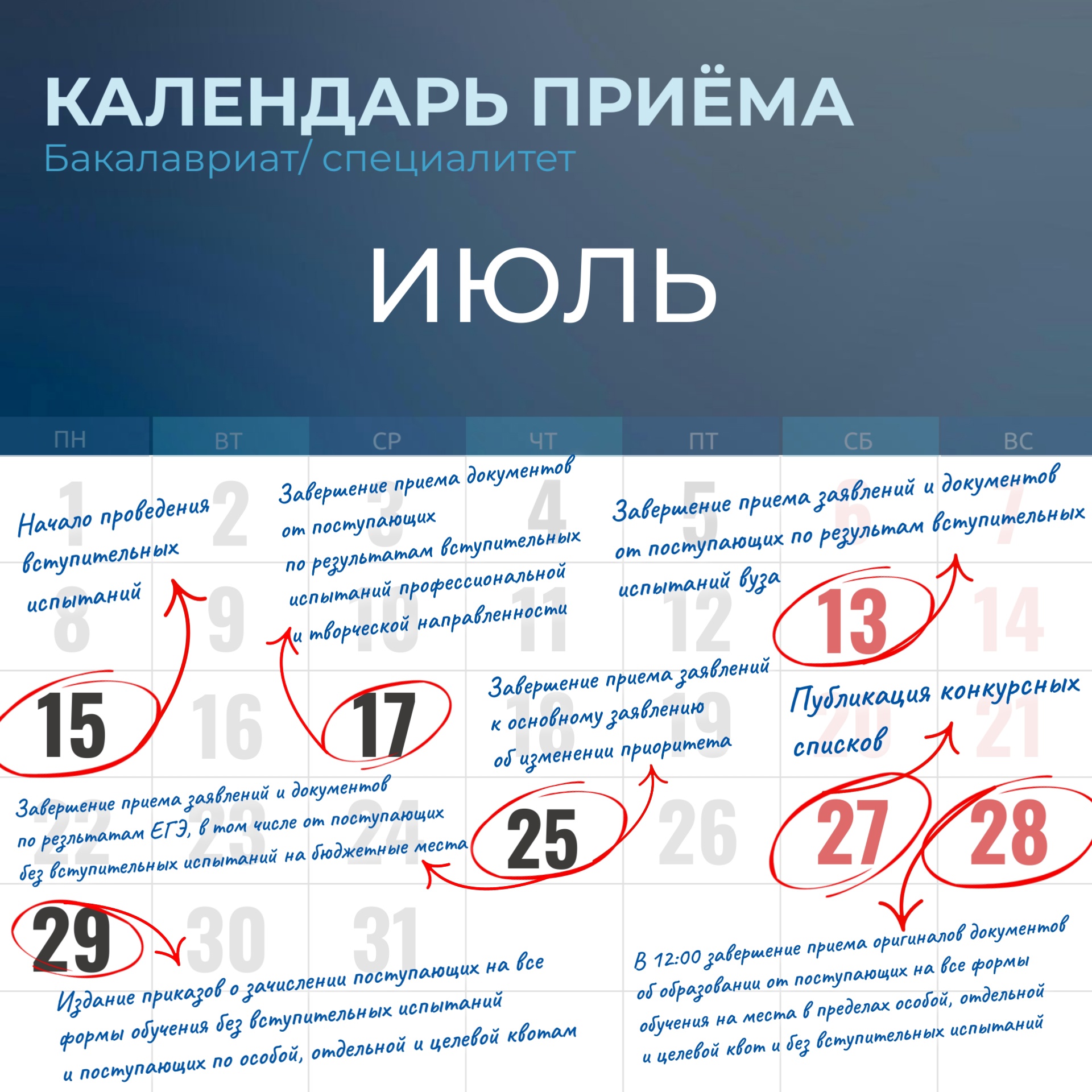 График работы приемной комиссии