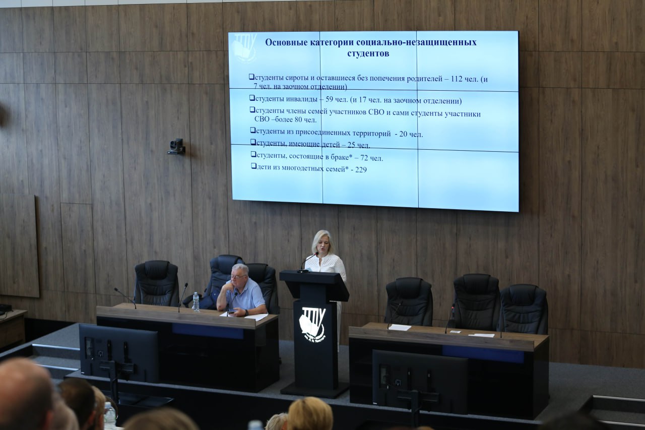 Вопрос о решении задач социальной поддержки студентов в университете осветила проректор по воспитательной работе и социальной политике Будникова Светлана Петровна.