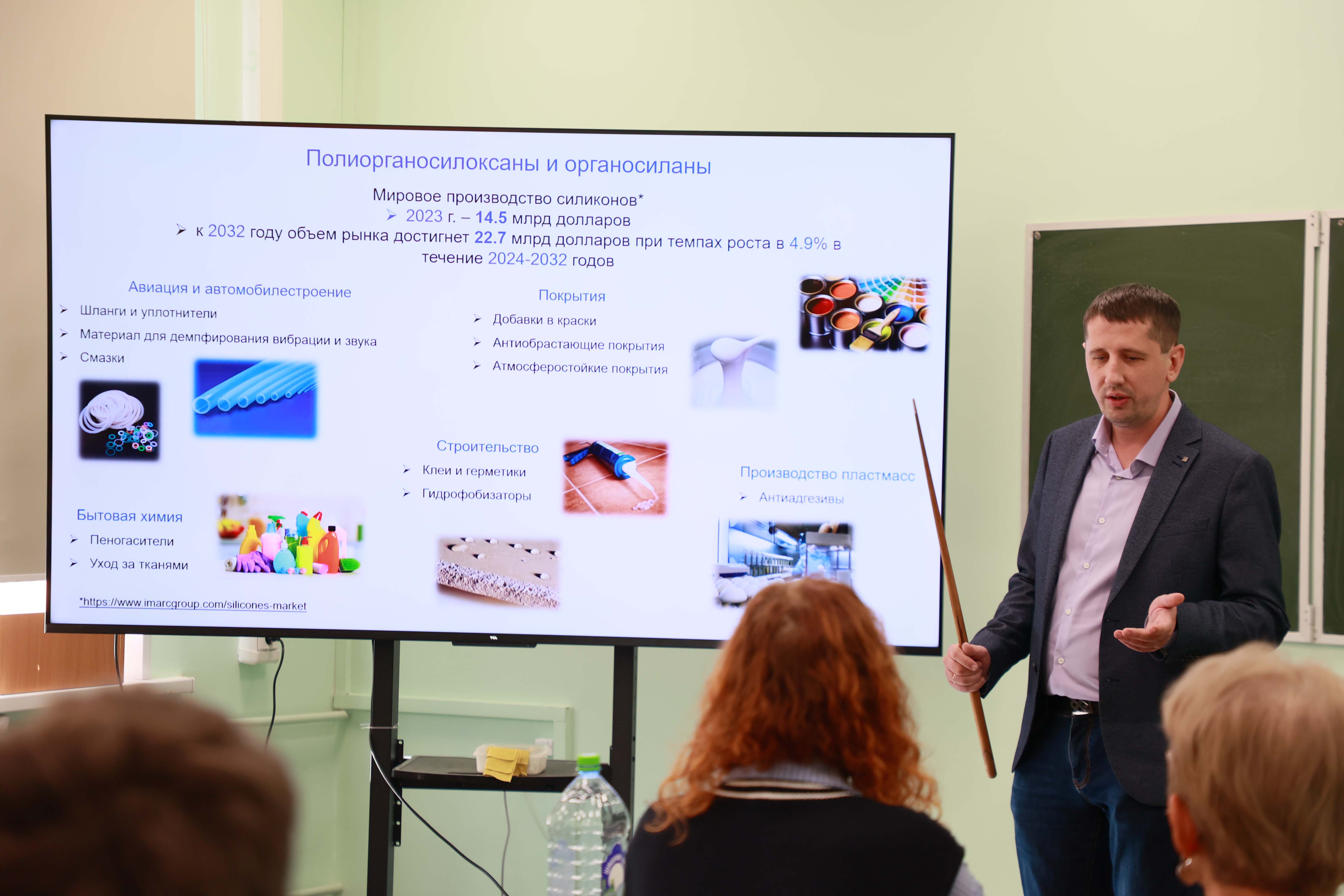 В рамках лекции слушатели узнали о том, кого из отечественных ученых признали «отцом силиконов», насколько широко они применяются в современной промышленности, какими уникальными свойствами обладают кремнийорганические соединения. Также Антон Анисимов рассказал о наиболее перспективных направлениях научных исследований.