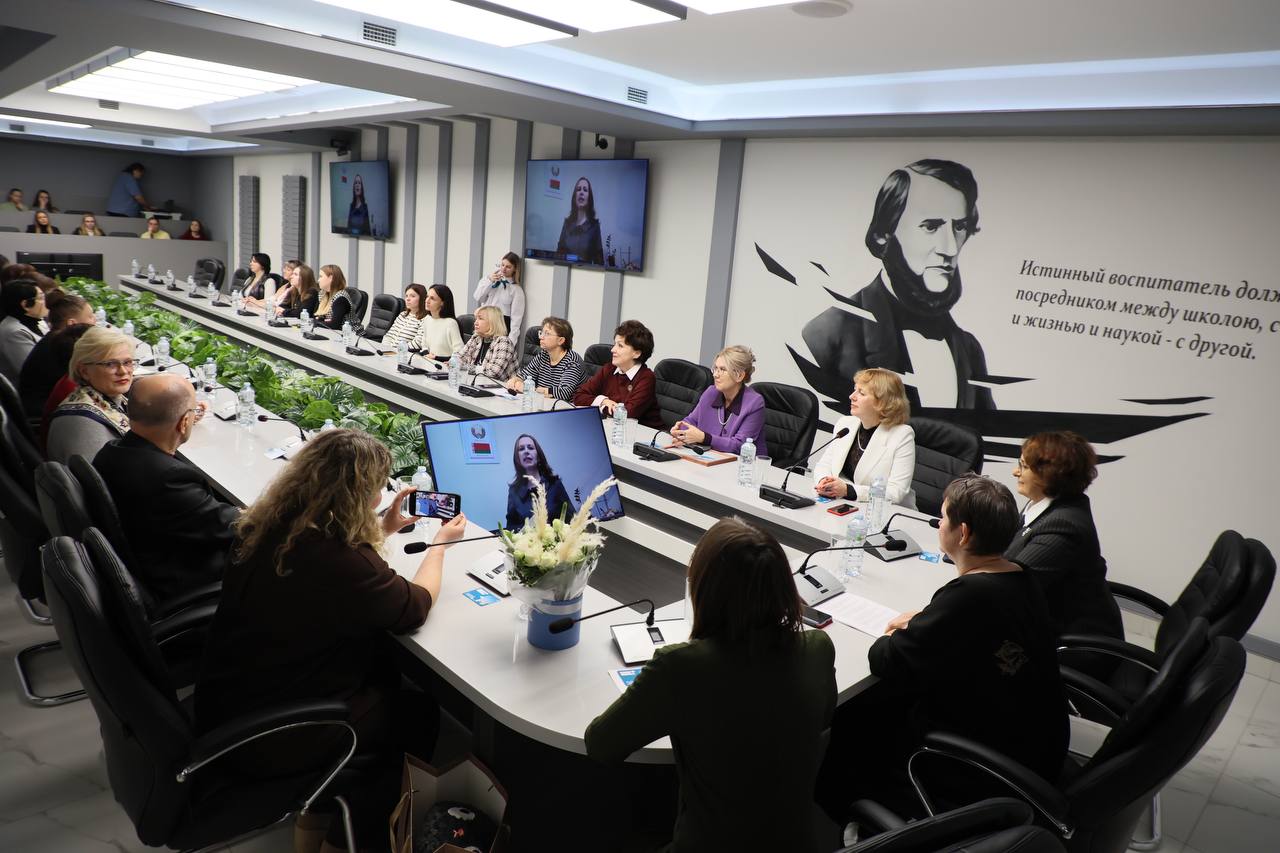По видеоконференцсвязи обратилась к участникам форума декан факультета начального образования БГПУ имени М.Танка Наталья Жданович: