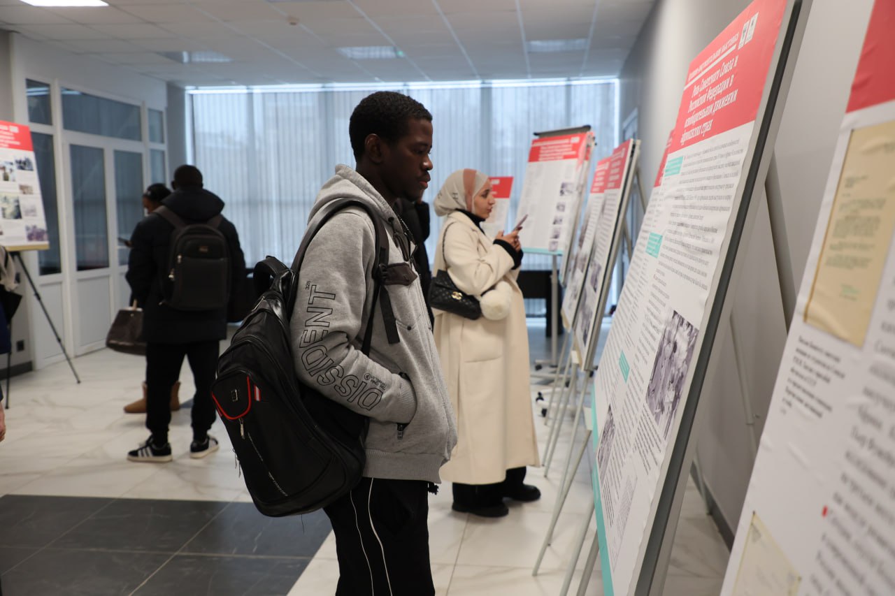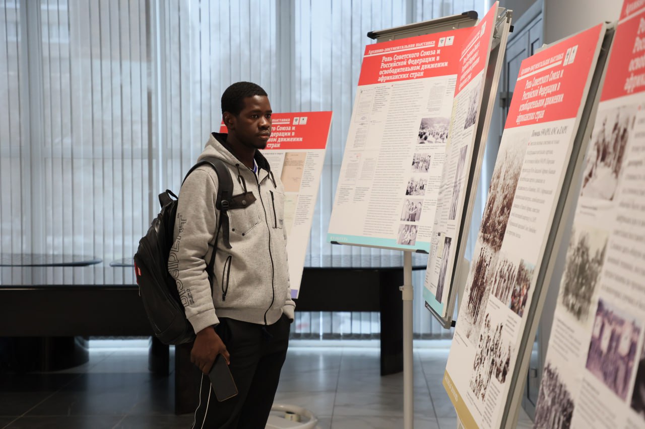 Сегодня, 10 декабря, в пространстве перед 4-м лекторием главного корпуса университета Льва Толстого состоялось открытие выставке «Роль СССР и России в освобождении Африки», подготовленной РГГУ при поддержке Министерства науки и высшего образования РФ.
