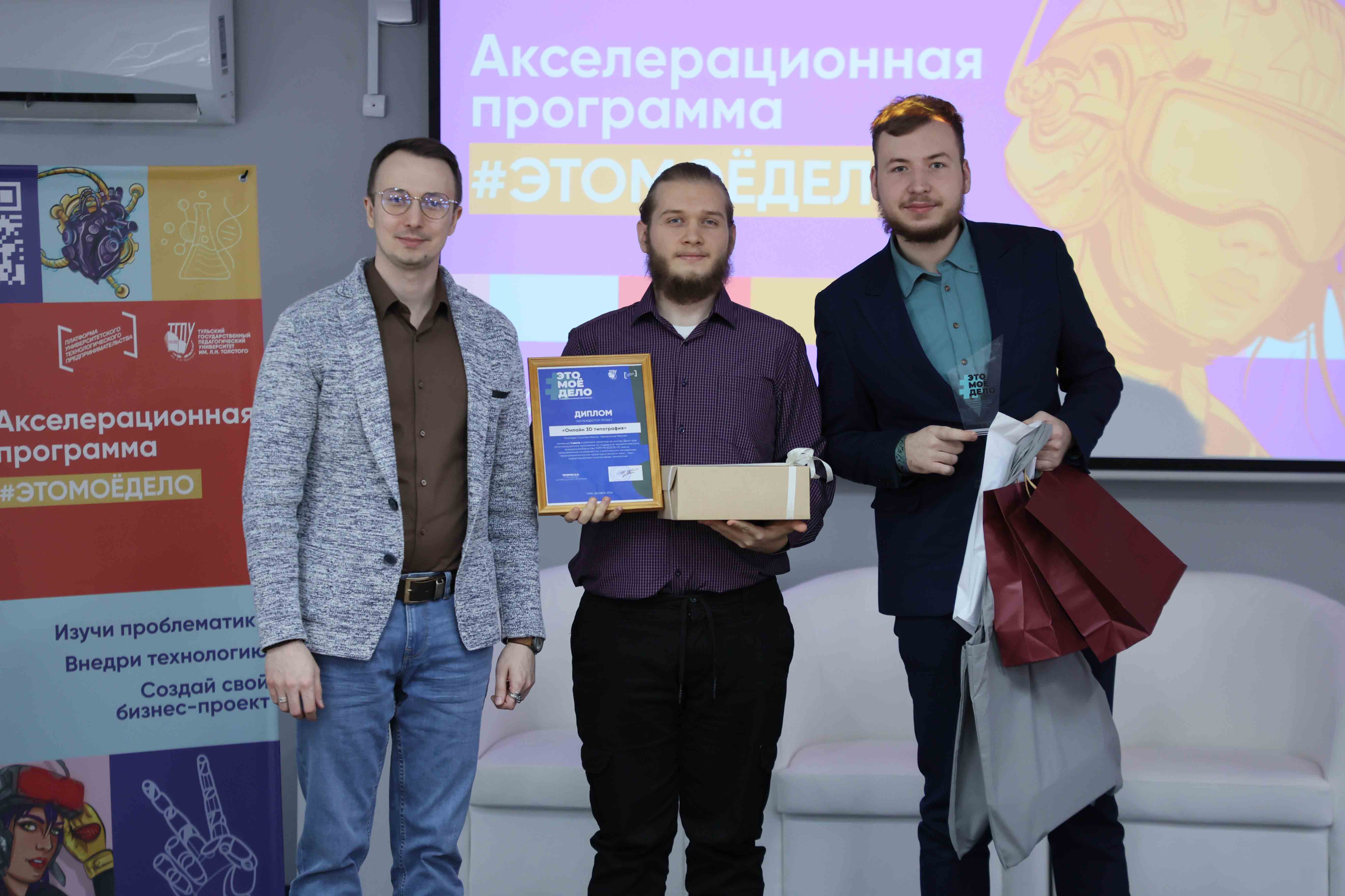Тожественная церемония прошла в Университетской Точке кипения. Победителей и призёров приветствовал руководитель акселерационной программы #ЭТОМОЁДЕЛО, директор департамента молодёжной политики и акселерационной деятельности Толстовского университета Иван Тетерин. Он поздравил студентов с завершением образовательной программы и ещё раз подчеркнул, что проекты — это не только результат интеллектуального труда, но и инвестиции, как в собственное будущее, так и в конечном итоге в будущее страны.