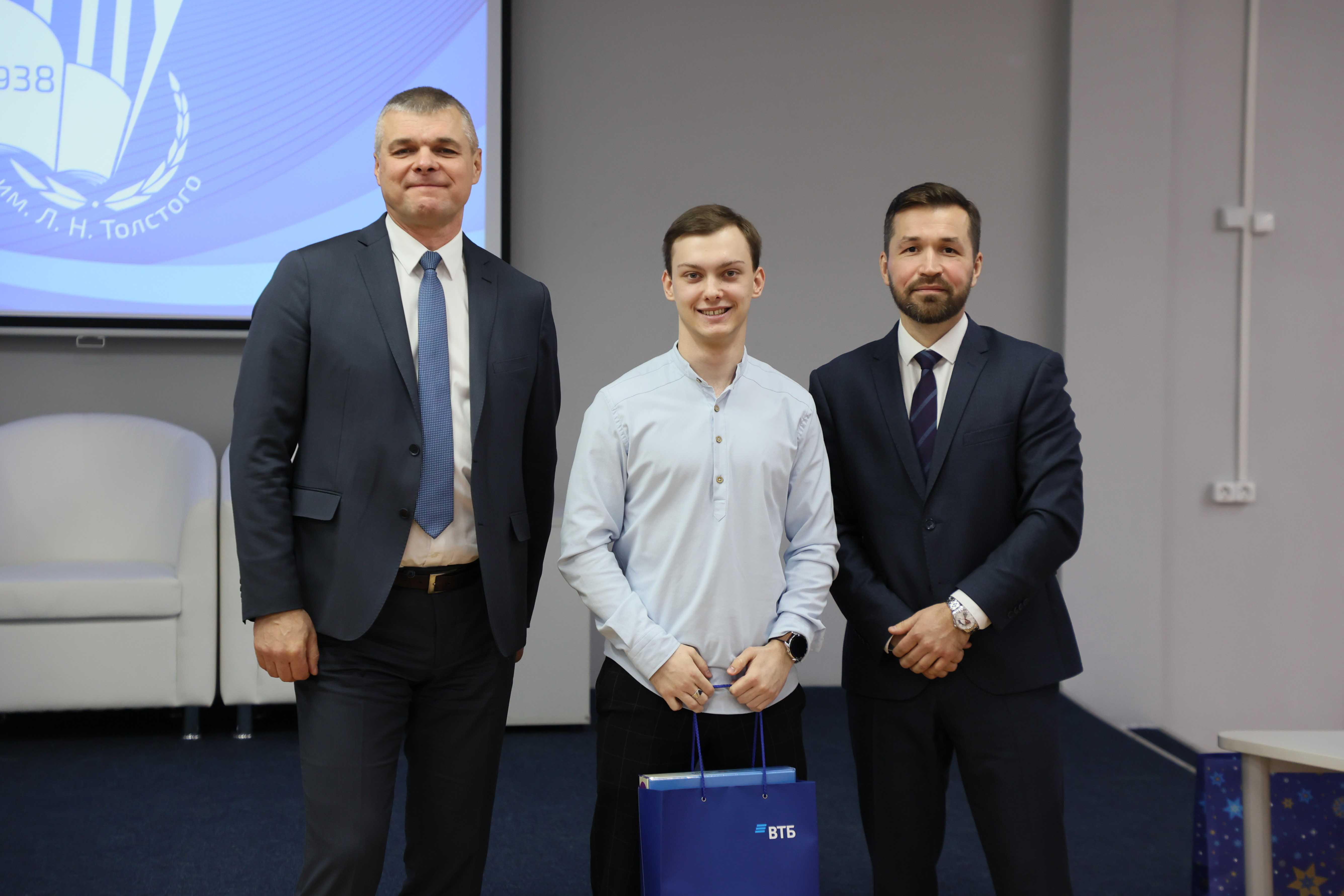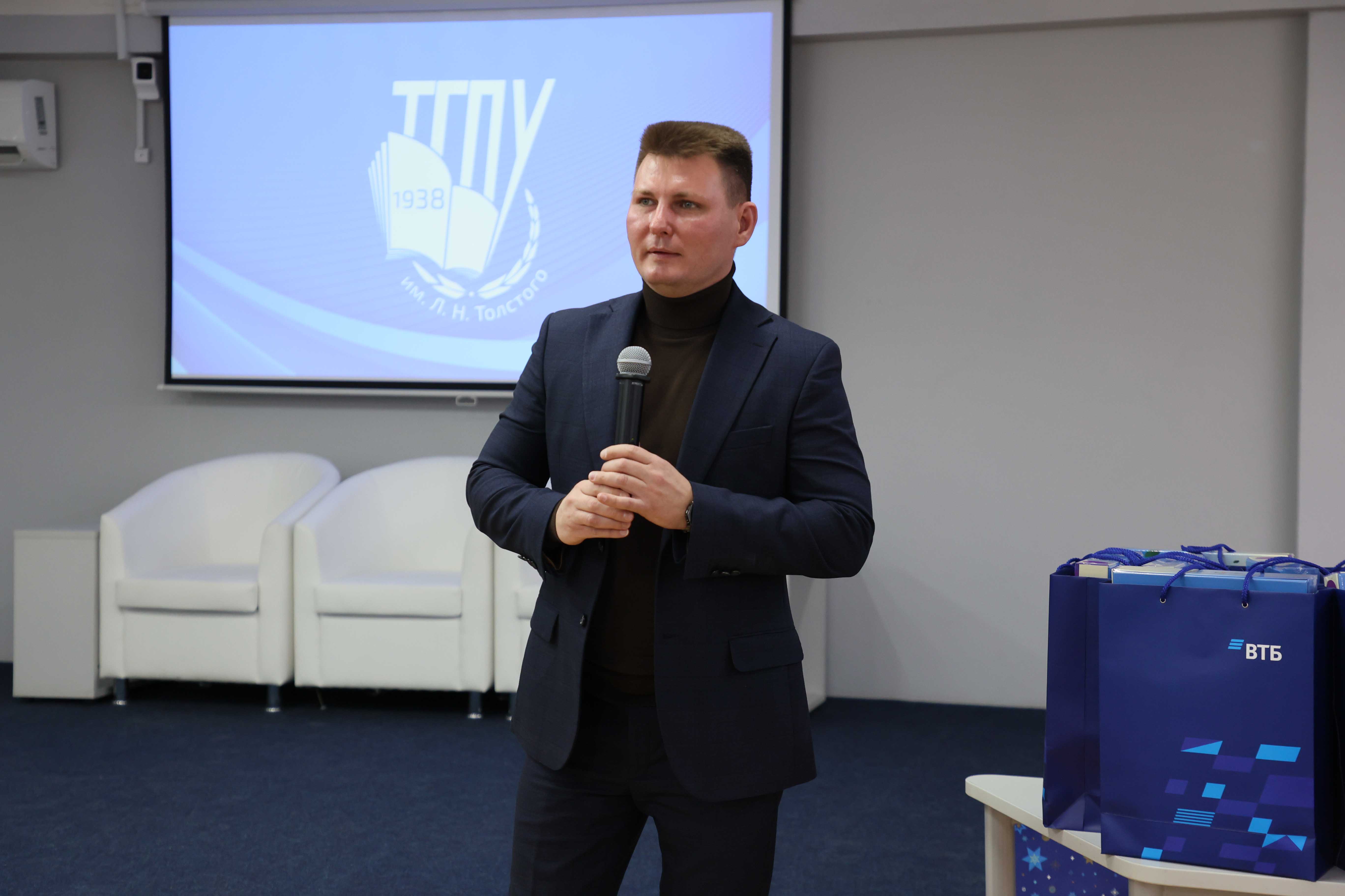 Благодарность студентам и представителям банка ВТБ также выразила Юдина Ольга, кандидат экономических наук, доцент кафедры экономики и управления. С приветственным словом к участникам церемонии награждения обратился Управляющий региональным операционным офисом «Тульский», вице-президент Банка ВТБ Тюрин Эдуард.