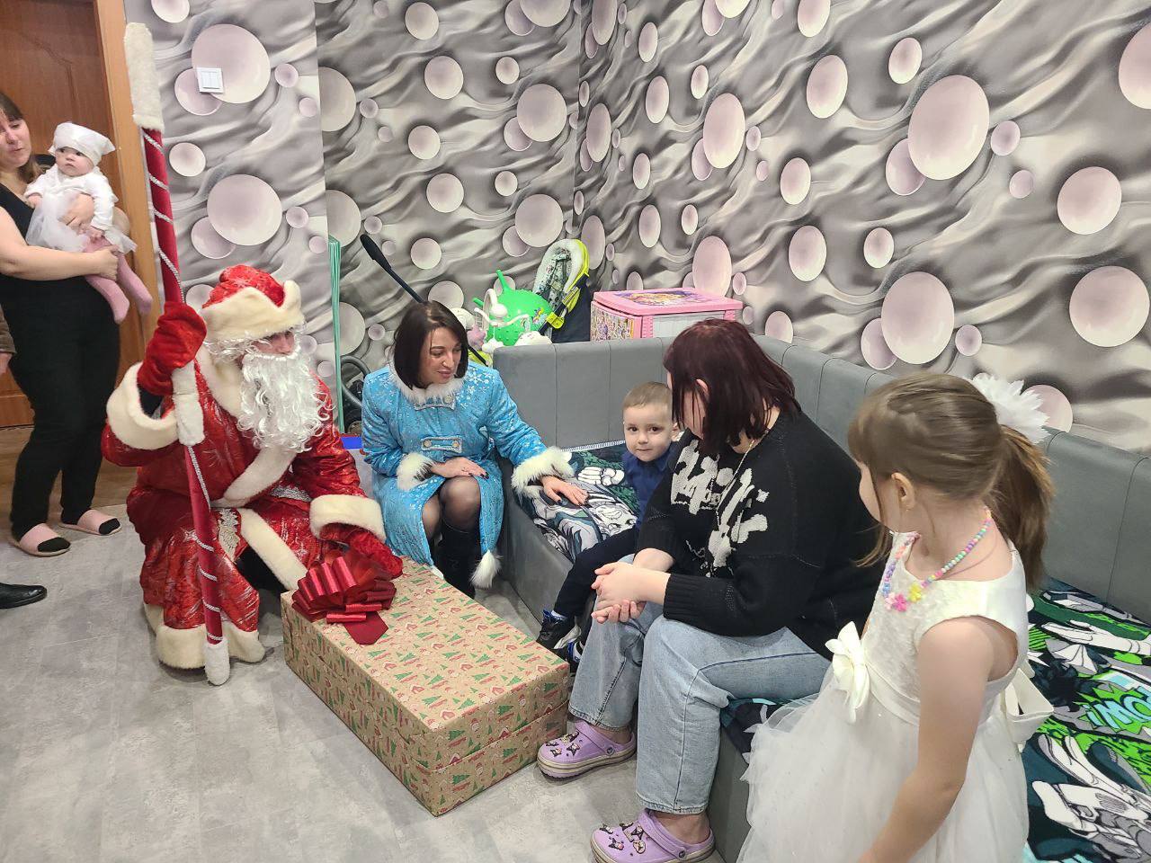 В образе Деда Мороза Константин поздравил многодетную семью, вручив Ангелине, Илье, Виктории и Максиму желанные подарки, среди которых электросамокат, синтезатор, шведская стенка и другие.