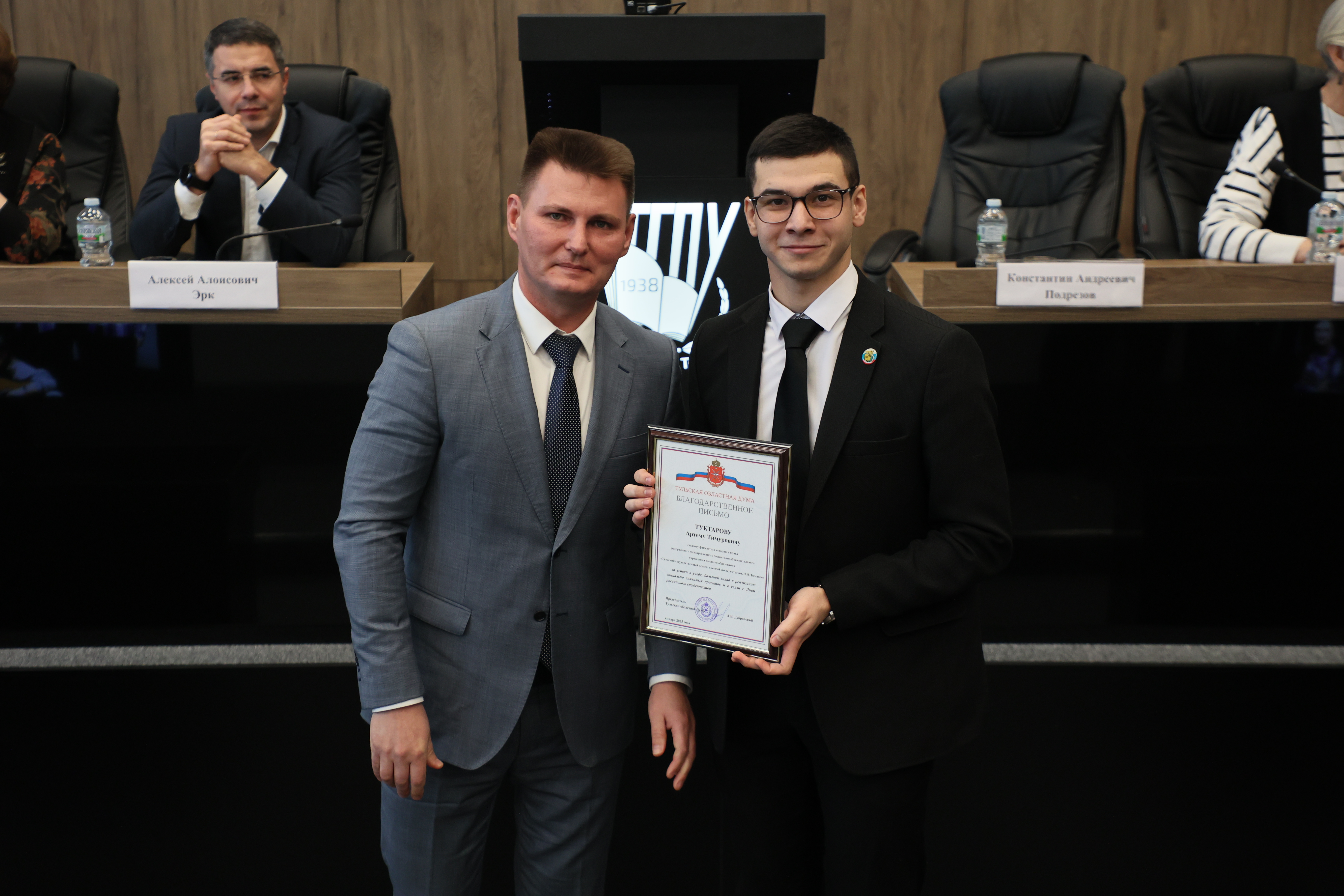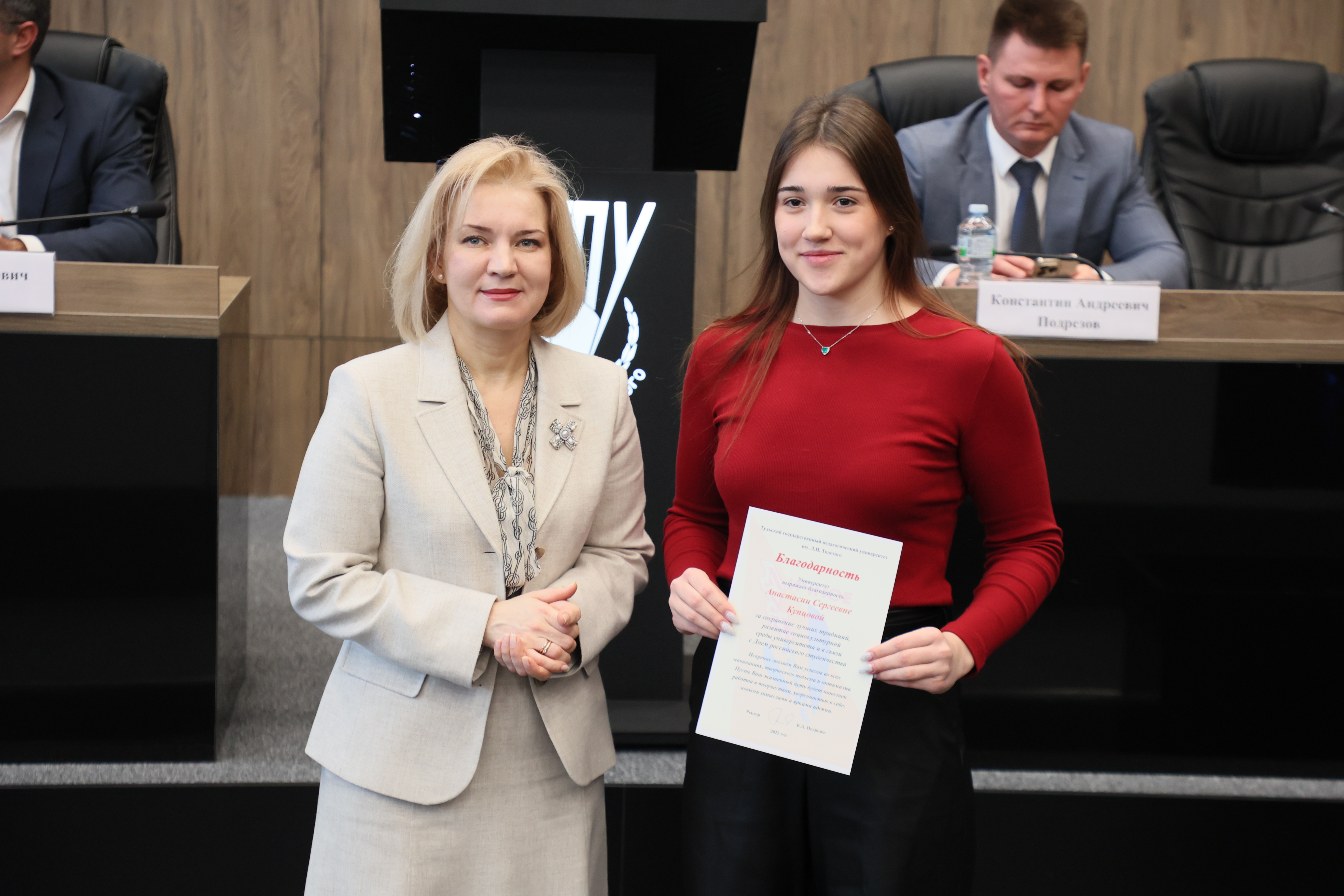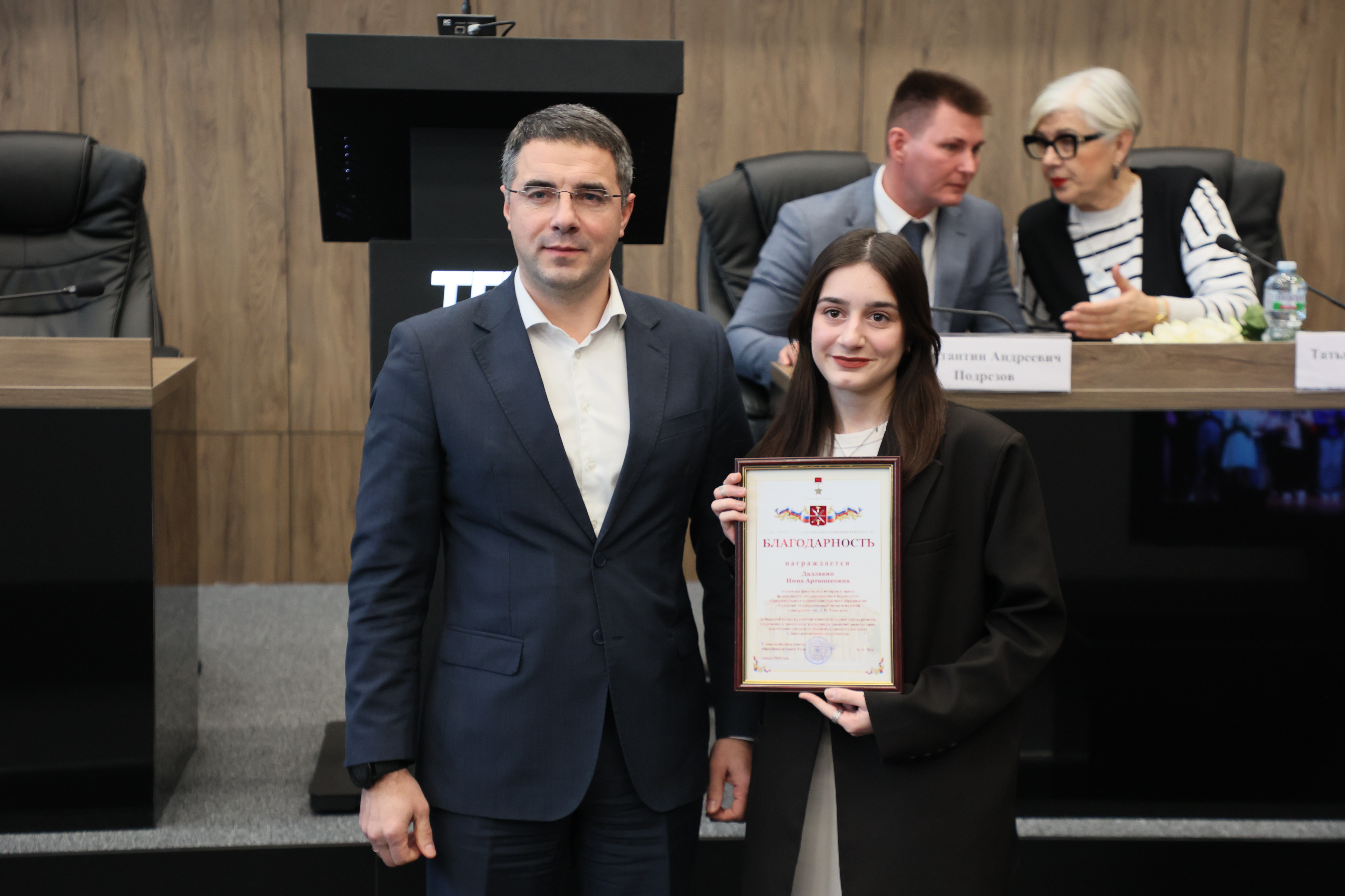 Константин Подрезов поздравил студентов с наступающим праздником также от имени председателя регионального парламента Андрея Дубровского, вручив благодарственные письма Тульской областной Думы за активную общественную работу и успехи в учёбе.