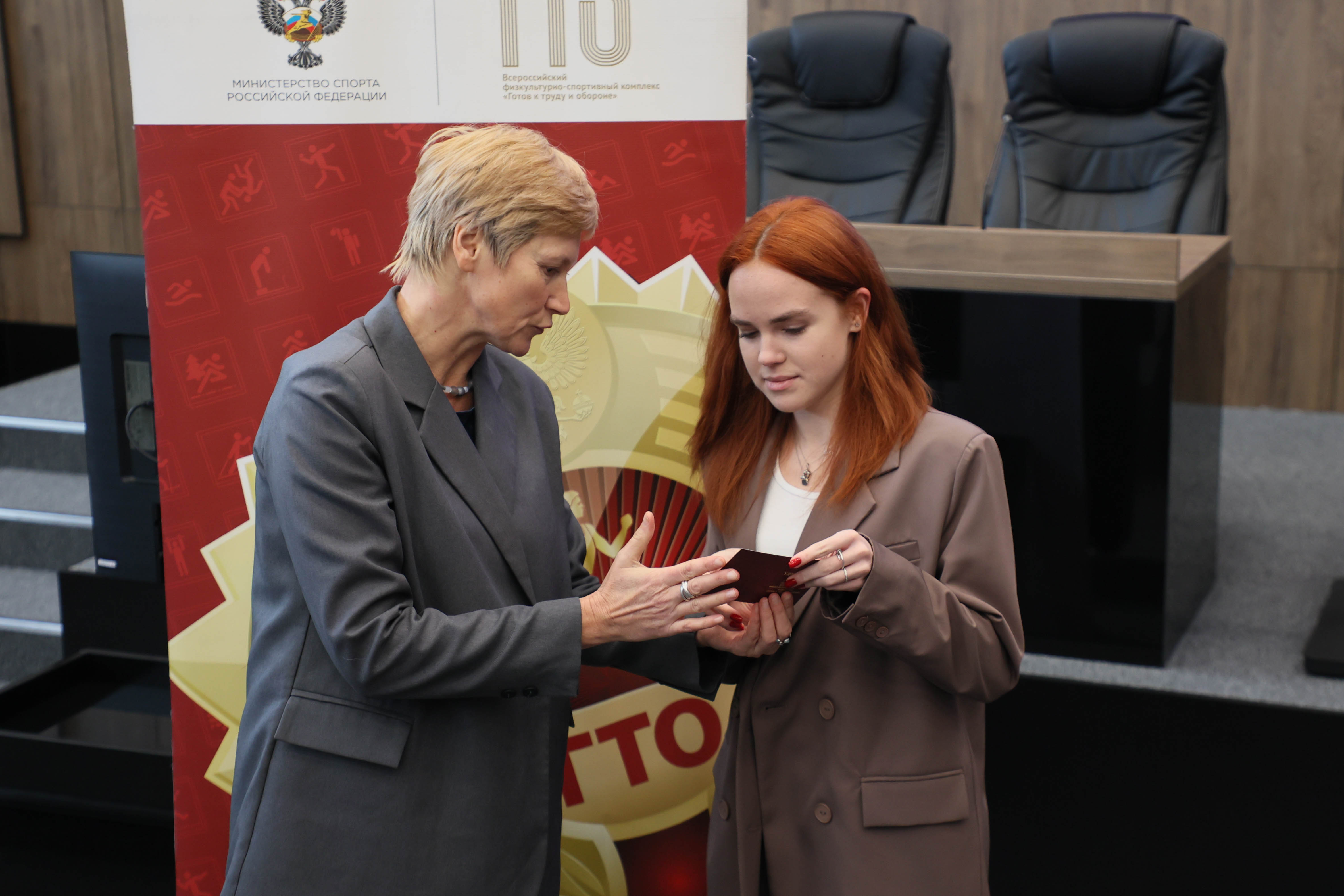 Сегодня золотые, серебряные и бронзовые знаки ГТО вручили ректор Университета Льва Толстого Константин Подрезов и сотрудники Тульского центра тестирования ВФСК ГТО.