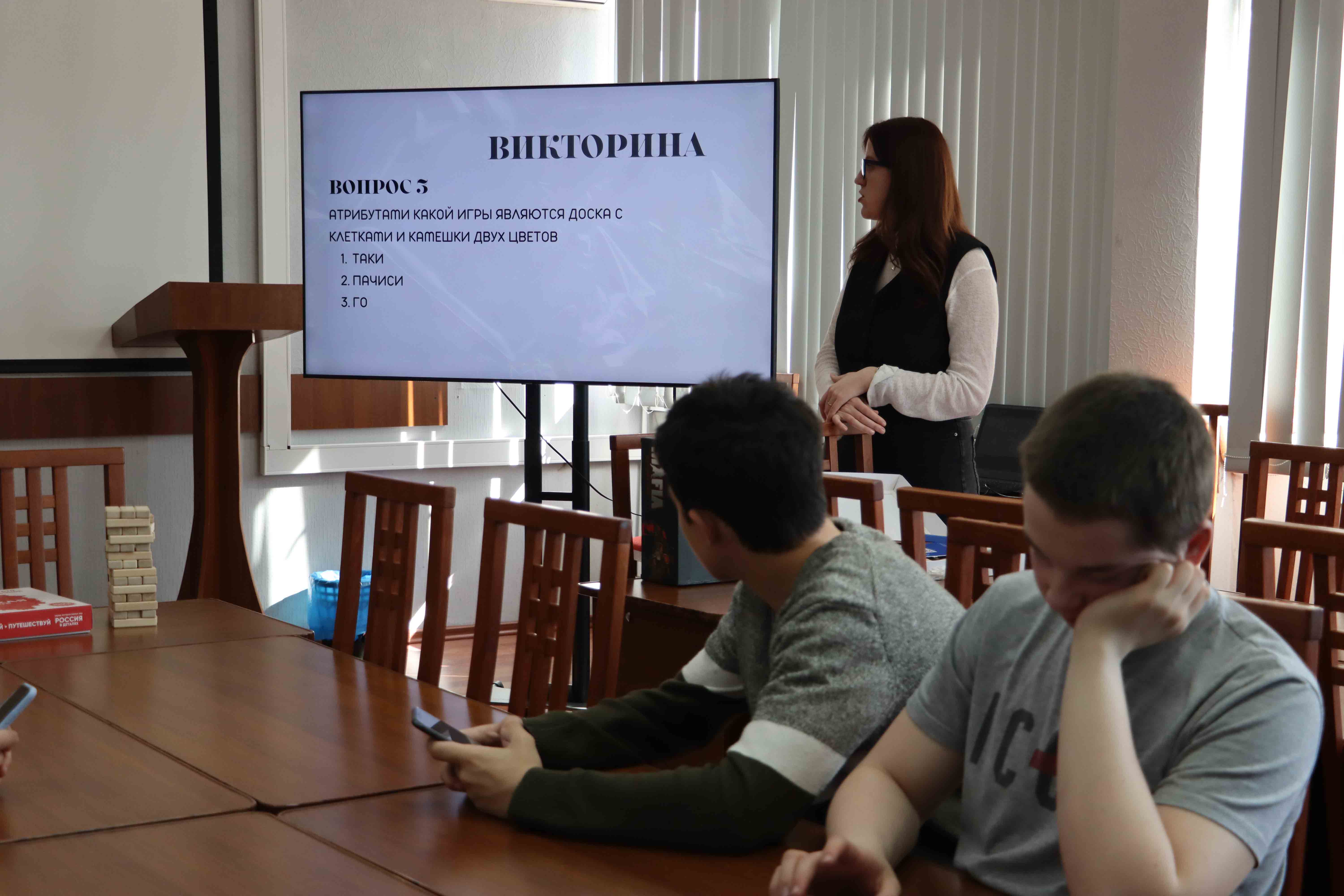 Творческая часть программы была организована студенческим настольным клубом «TabStud» для учащихся Центра образования № 49 Ленинского района. Юные гости университета познакомились с популярными настольными играми: «Дженга», «Мафия» и «Иманджарик». Кроме того, ребята узнали о современных тенденциях в мире настольных игр и получили возможность попробовать себя в новых игровых форматах.