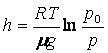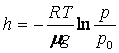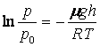 Барометрическая формула имеет вид