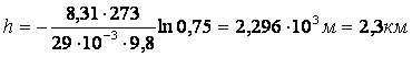 На какой высоте давление воздуха составляет 75% от давления на уровне моря? Температуру воздуха считать постоянной и равной 0°С.