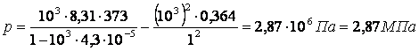 газа а=0,364 Паּм6/моль2, b=4,3ּ10-5 м3/моль.