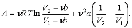 выражение для работы А, совершаемой молем газа Ван-дер-Ваальса при