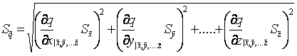 Пример: определим выражение для стандартного отклонения величины q, которая связана с величинами x,y,z, определяемыми прямыми измерениями, следующим соотношением: