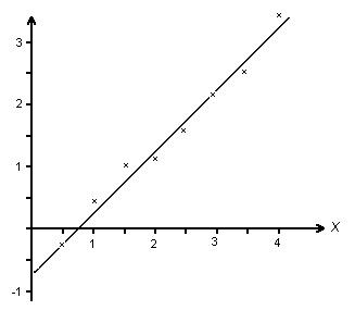 Задача состоит в том, чтобы найти параметры b и a, при которых прямая, выражающая на графике зависимость (16.1), наилучшим образом проходила бы через экспериментальные точки.