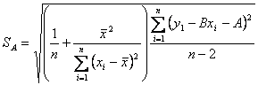 где В определяется формулой (16.11); Sв - формулой (16.12); ta,n-2 - коэффициент Стьюдента для надежности a и значения параметре n-2; n - число пар экспериментальных точек.