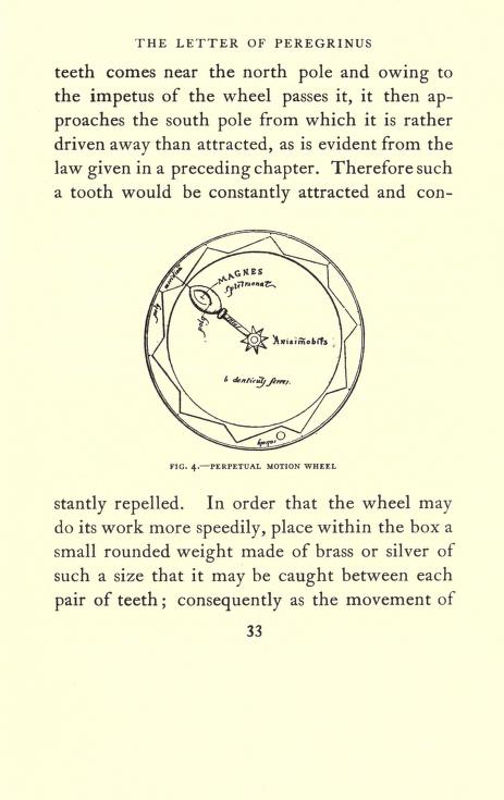 Перегрин с помощью магнита собирался построить вечный двигатель URL-1, URL-2.