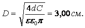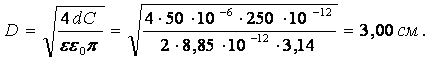 Требуется изготовить конденсатор емкостью 250 пФ. Для этого на парафинированную бумагу с диэлектрической проницаемостью 2,00 толщиной 50,0 мкм наклеивают с обеих сторон кружки станиоля. Каков должен быть их диаметр? (В.9.86)