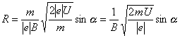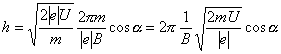 Электрон, ускоренный разностью потенциалов U=6,00 кВ, влетает в однородное магнитное поле под углом a=30 градусов к направлению поля и движется по винтовой траектории. Индукция магнитного поля В=13,0 мТл. Найти радиус R и шаг h винтовой траектории. (В.11.86)