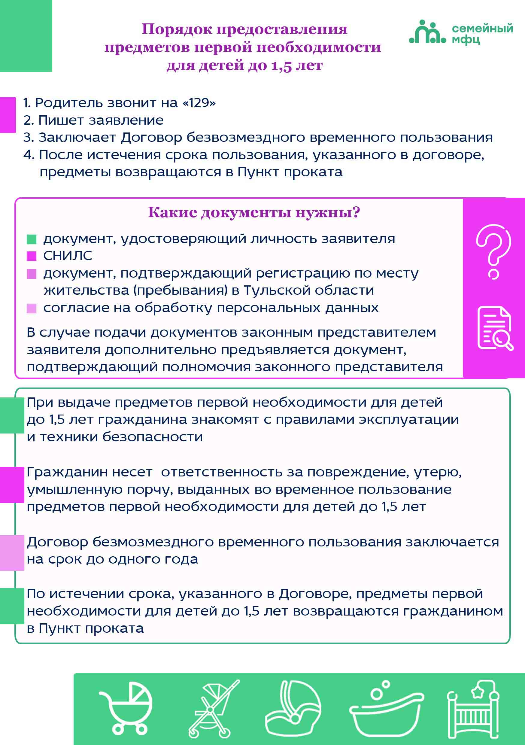 Министерство труда и социальной защиты Тульской области сообщает, что 1 июня в рамках нацпроекта «Семья» на базе ГУ ТО Семейный МФЦ «Мой семейный центр» в Туле открылся первый пункт проката предметов первой необходимости для детей до 1,5 лет.