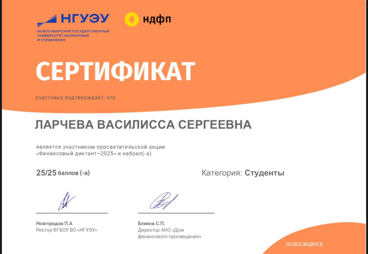 Информируем о начале масштабной просветительской акции «Финансовый диктант», участники которой могут проверить уровень своих знаний в области финансов, получить новую полезную информацию. Всероссийская просветительская акция «Финансовый диктант» стартовала 8 сентября 2025 г., в День финансиста, и продлится до 8 октября. Мероприятие проводится в онлайн-формате, поэтому присоединиться можно из любой точки мира через смартфон, планшет или другое устройство. После прохождения каждый участник получит персональный сертификат с результатом диктанта. Написать Финансовый диктант может любой желающий, независимо от возраста и уровня образования. Каждый участник получит набор из 25 вопросов по ключевым тематикам финансовой грамотности – планирование бюджета, налогообложение, страхование, инвестирование, защита прав потребителей и основы финансовой безопасности. По уровню сложности все вопросы разделены на три целевые группы: учащиеся 8–11-х классов; студенты и взрослое население; лица пенсионного возраста. Количество прохождений тестирования не ограничено, допускается повышение результата.Присоединиться к диктанту и проверить свои знания можно по ссылке