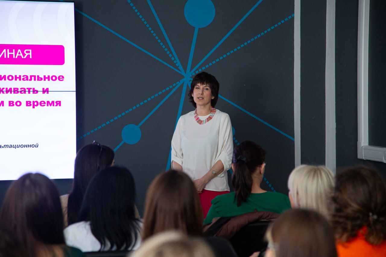 Спикером выступила кандидат педагогических наук, доцент кафедры психологии и педагогики, консультант Центра психолого-педагогической, методической и консультационной помощи при Университете Льва Толстого Эллада Владимировна Шелиспанская.