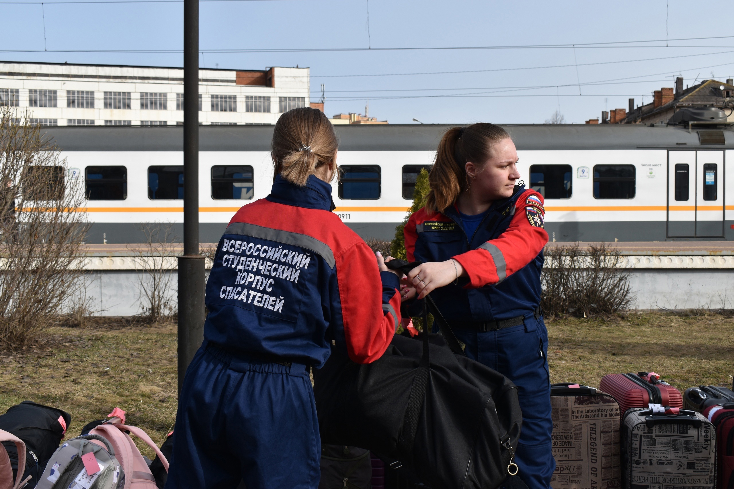 Среди добровольцев, встречающих детей, были представители студенческого спасательного отряда «Ориентир» Толстовского университета. Вместе с другими волонтерами и специальными службами они оказывали помощь в погрузке личных вещей и распределении детей по автобусам.