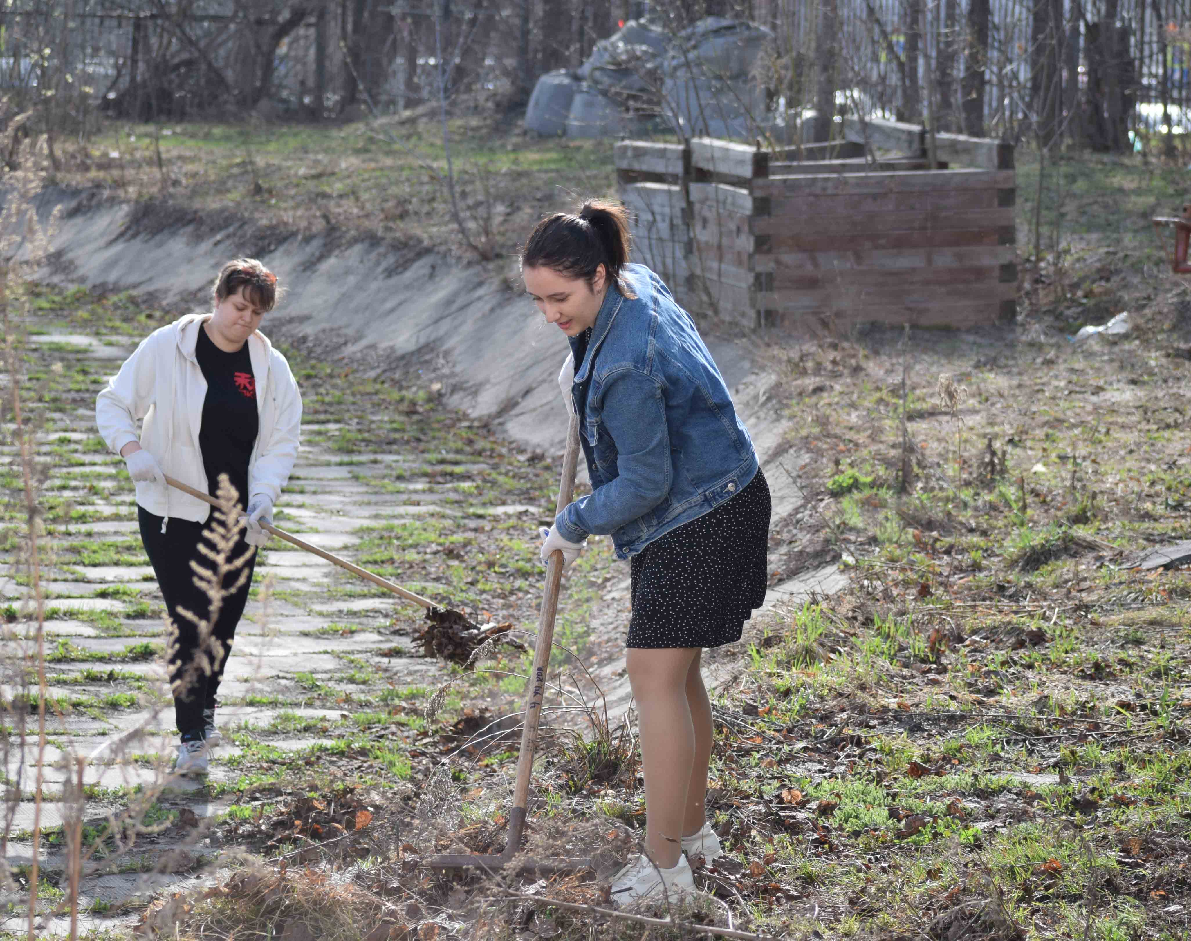 За два дня ребята очистили от старой грязной листвы дорожки и тротуары, собрали мусор, а также отлично провели время на свежем воздухе в дружной компании.