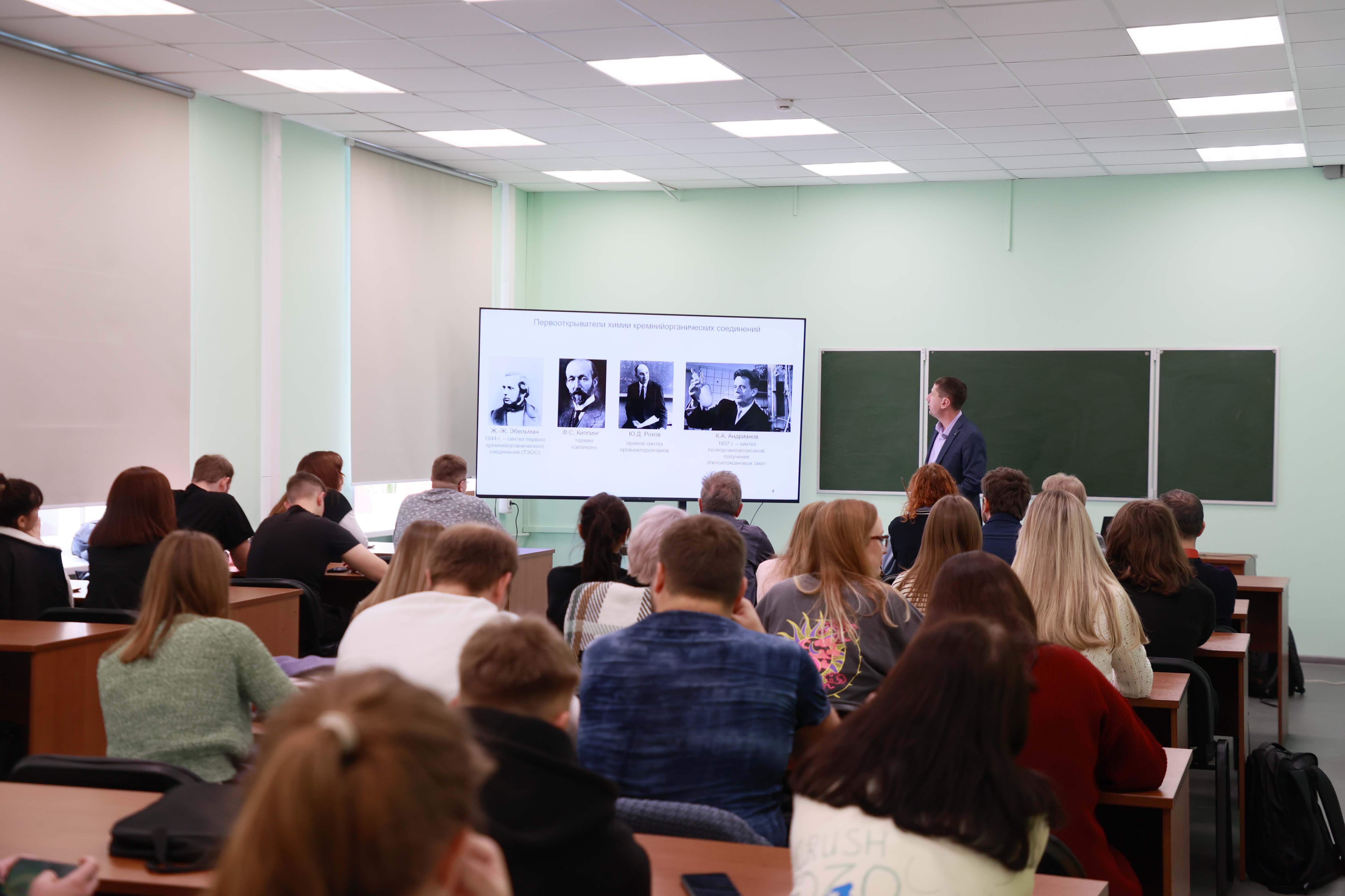 Студентам факультета естественных наук Университета Льва Толстого рассказали об актуальных исследованиях в сфере кремний-органической химии. С научно-популярной лекцией «Современная кремний-органическая химия: от кремния до материалов специального назначения» перед слушателями выступил кандидат химических наук, заведующий лабораторией кремний-органических соединений Института элементоорганических соединений им. А.Н. Несмеянова РАН Антон Анисимов.