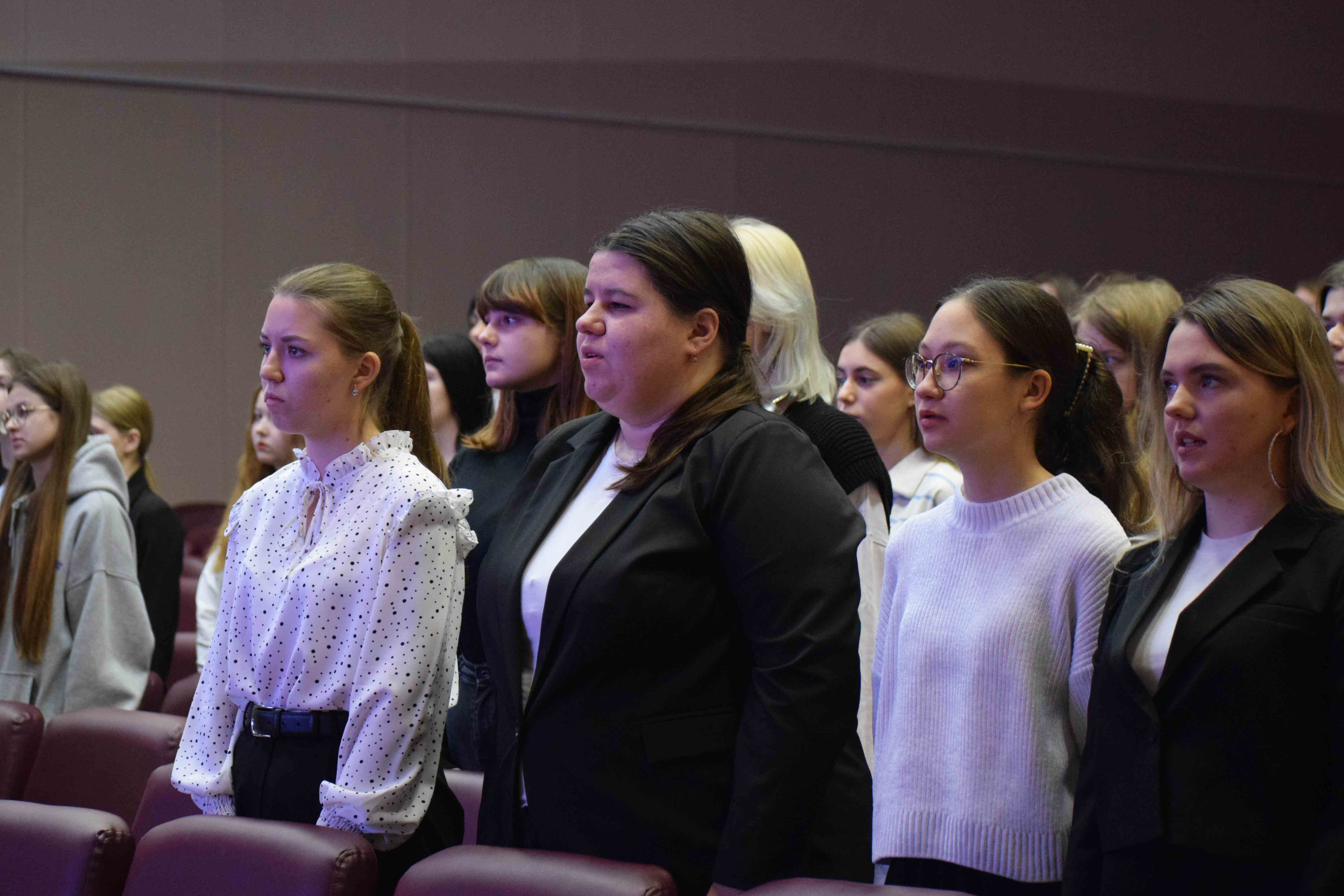 Новая учебная неделя в Университете Льва Толстого началась Церемонией вноса государственного флага РФ и исполнения гимна РФ.