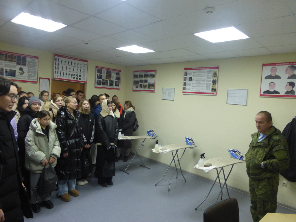 Студенты побывали в расположении одного из подразделений дивизии, ознакомились с комнатой для занятий, бытовой и оружейной комнатами, пообщались с офицерами воинской части и поинтересовались о правах и обязанностях военнослужащих, в чем отличие срочной службы от службы по контракту.