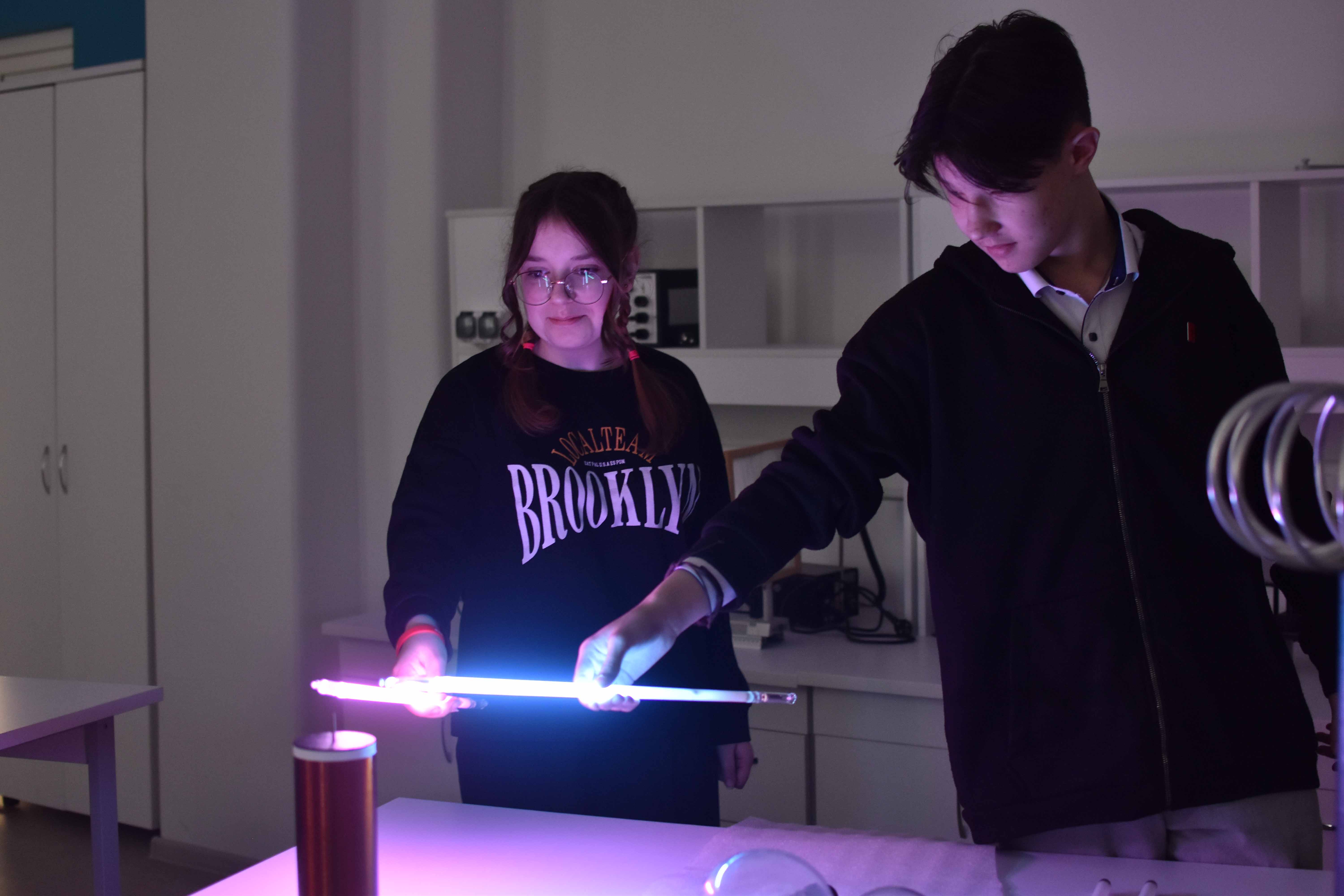 Школьники изучили возможности интерактивного анатомического стола «Пирогов», детально рассмотрев строение человеческого организма в интерактивном формате. Управляя программируемым роботом RoboMaster S1, они попробовали себя в робототехнике, а также узнали о возможностях беспилотных летательных аппаратов и наблюдали электромагнитное поле в действии.