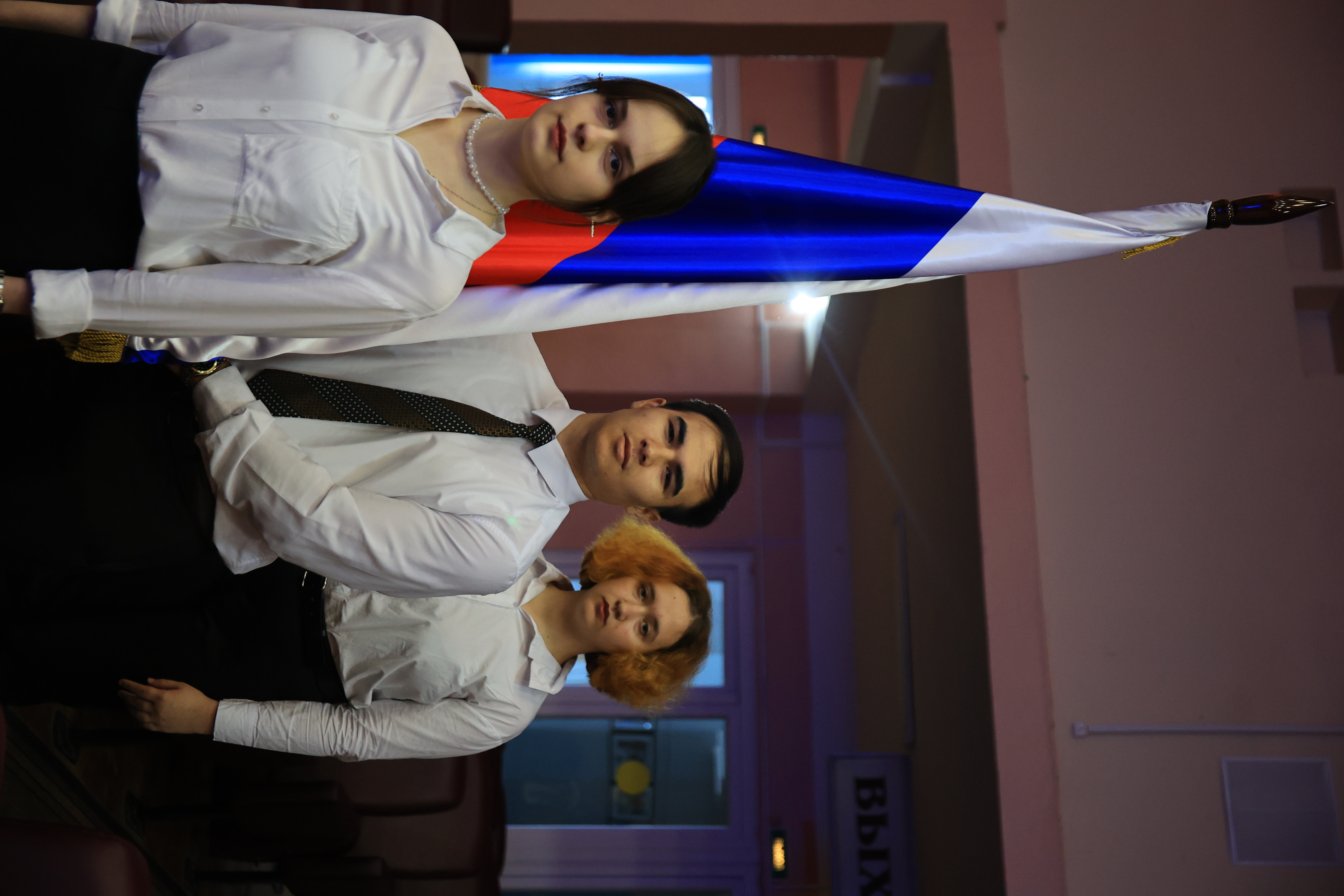 Разговор предваряла торжественная церемония внесения флага Российской Федерации.