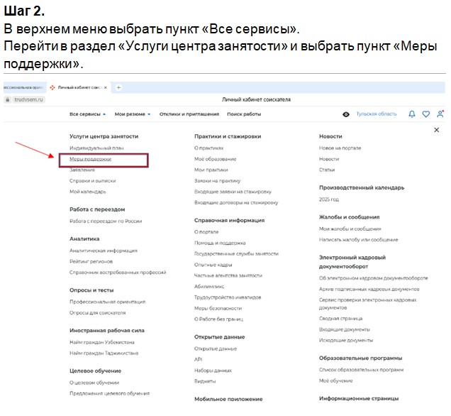 На базе единой цифровой платформы «Работа в России» для всех выпускников и студентов открыта возможность подачи заявления на профориентацию. Результатом обработки поданного заявления станет активная помощь в разработке индивидуальной траектории трудоустройства от Центра занятости населения Тульской области.