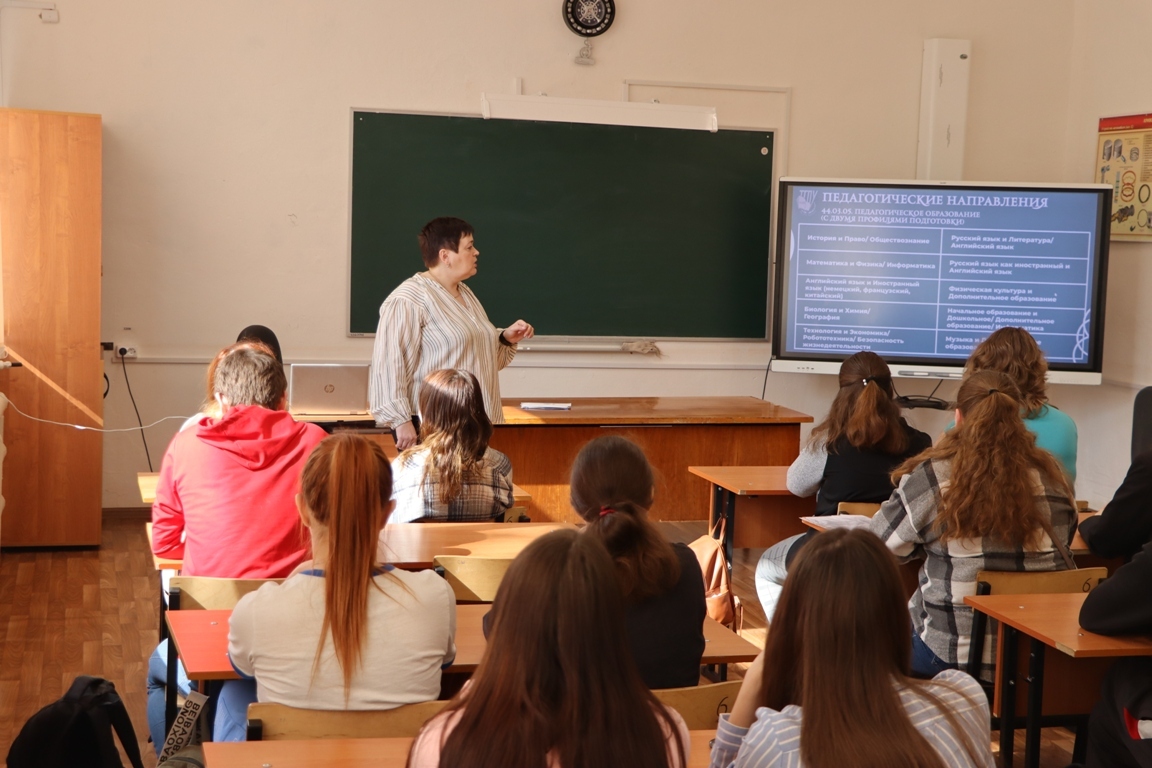 В трех школах г. Узловая работают психолого-педагогические классы, ребята из других школ, заинтересованные в профессии учителя, могут участвовать в работе муниципального педагогического актива. Конечно, особое внимание на встрече было уделено педагогическим и психолого-педагогическим направлениям подготовки. Особый интерес вызвала информация о том, как заключить договор о целевом обучении, получив ещё до поступления в университет гарантии трудоустройства, а также материальную и методическую поддержку со стороны работодателя. А ещё как можно, выбрав профили педагогических направлений подготовки «Математика», «Физика» и «Химия», получать сразу три стипендии – в том числе и от Правительства Тульской области.