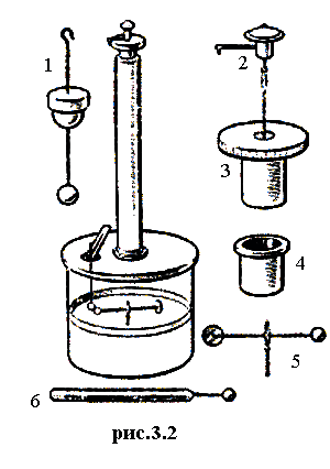 С помощью крутильных весов (рис.3.2) проверяется зависимость силы от квадрата расстояния (по углу закручивания металлической нити). Аппарат Кулона представлял собой стеклянный цилиндр, имеющий на поверхности измерительную шкалу. В крышке цилиндра имеются центральное и боковое отверстия. В центральное отверстие пропущена серебряная нить, закрепленная на измерительной головке и проходящая по оси высокого стеклянного цилиндра, заканчивающегося упомянутой головкой. Нить несет легкое стеклянное коромысло, заканчивающееся шариком и противовесом. В боковое отверстие пропускается стерженек, несущий наэлектризованный шарик. В своем первом мемуаре (1785 г) Кулон исследует отталкивающую силу, и находит, что при угловых расстояниях между шариками (которые первоначально при контакте получают одинаковые заряды) 36, 18, 9 градусов нить закручивалась на 36, 144, 576 градусов, т.е. по закону обратных квадратов.