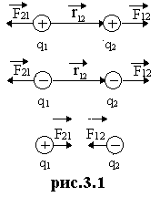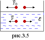 Если среда, в которой находятся заряды не вакуум, то в закон Кулона вводится характеристика среды, которая называется диэлектрической проницаемостью. Она в электростатике не меньше единицы, и показывает, во сколько раз сила взаимодействия двух точечных зарядов в среде меньше, чем сила взаимодействия в вакууме (рис.3.5).
